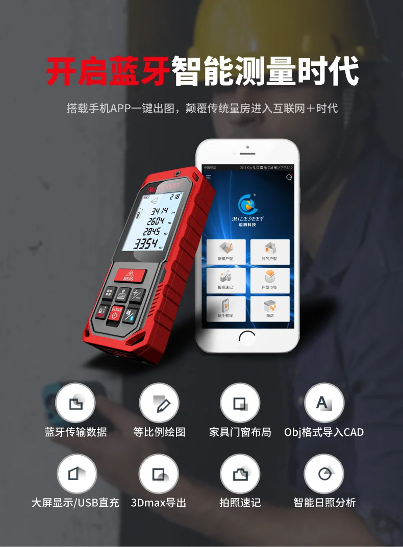 MkKUZjxXkHere you can buy S2 Green Bluetooth High-precision Laser Range Finder Infrared Measurement Electronic Ruler Room Meter One-click CAD Drawing with free delivery to your post office.