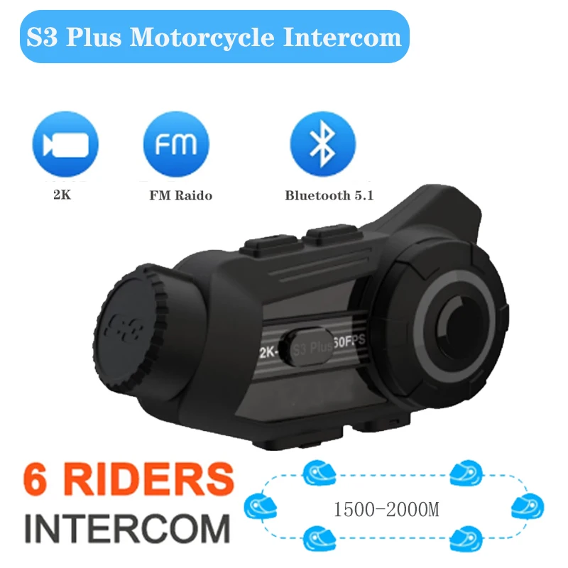 S3 Plus Motorcycle Intercom 2K HD Camera Helmet Bluetooth Video Headset BT5.1 1500M 6 Riders Group Interphone Communicator IP65 - Купить с бесплатной доставкой