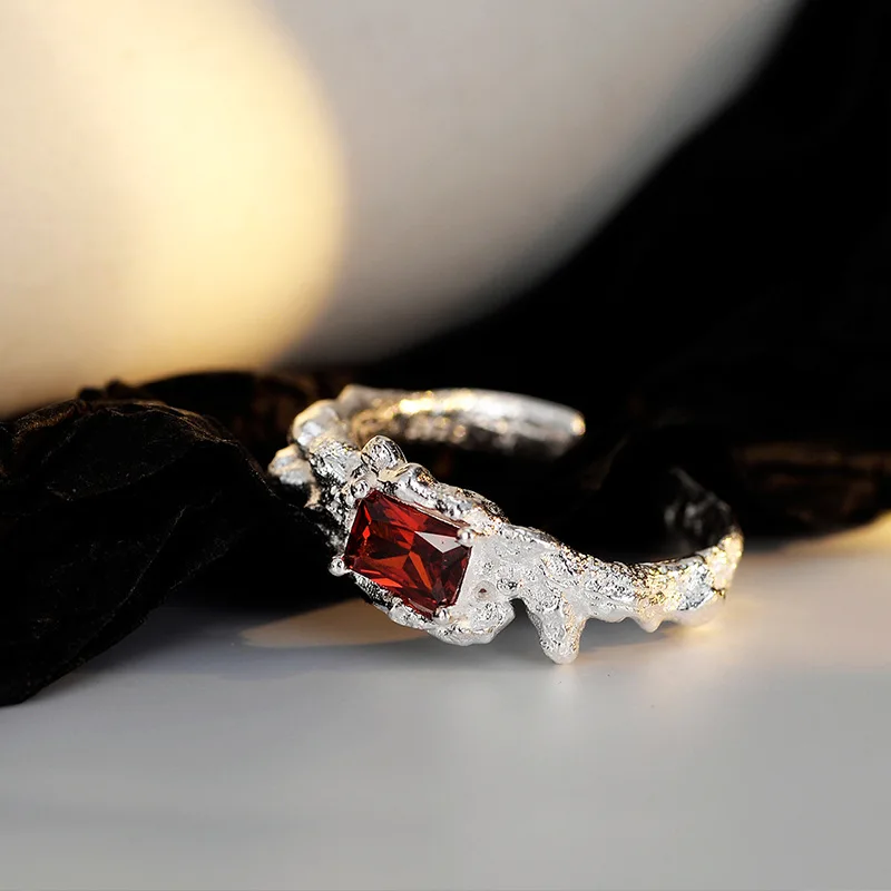 «SACE GEMS Rings for Women 925 Sterling Silver A Niche Design with Advanced Texture Ins Wind Openings Inlaid with Red Zircon Ring» по лучшей цене на рынке! Всего за 15$ (1425рублей)