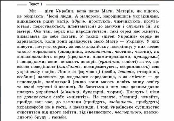 "Мы - дети Украины, она наша Мать. Матерей, как известно, не выбирают. Честные люди. А малороссы, родившись украинцами, покидают родную мать, (идут) к мачехе, и служат ей, как матери. Вот такие среди нас рождаются, такие среди нас живут и требуют к себе уважения. У таких «детей Украины» сердце не содрогается, когда они предают свою Мать — Украину. У них отсутствует чувство стыда за своё злодейское поведение, у них нет такого морального (компонента), как ответственность перед предками и потомками; (совесть) не укоряет их тем, что своим поведением они (позорят) всю украинскую нацию. Лишь по форме эти (существа) принадлежат к человеческой среде, по содержанию — недочеловеков, полулюдей (если даже у них высшее образование и научные степени и звания). По многим из них давным-давно плачут украинские (тюрьмы). Плачут и никак не дождутся своих «клиентов». Не плачьте, тюрьмы, ждите, придёт ваше время, к вам таки придут украинофобы, и не в гости, а навсегда. И тогда украинское общество очистится от этого мусора, от (непереносимой) грязи и позора".