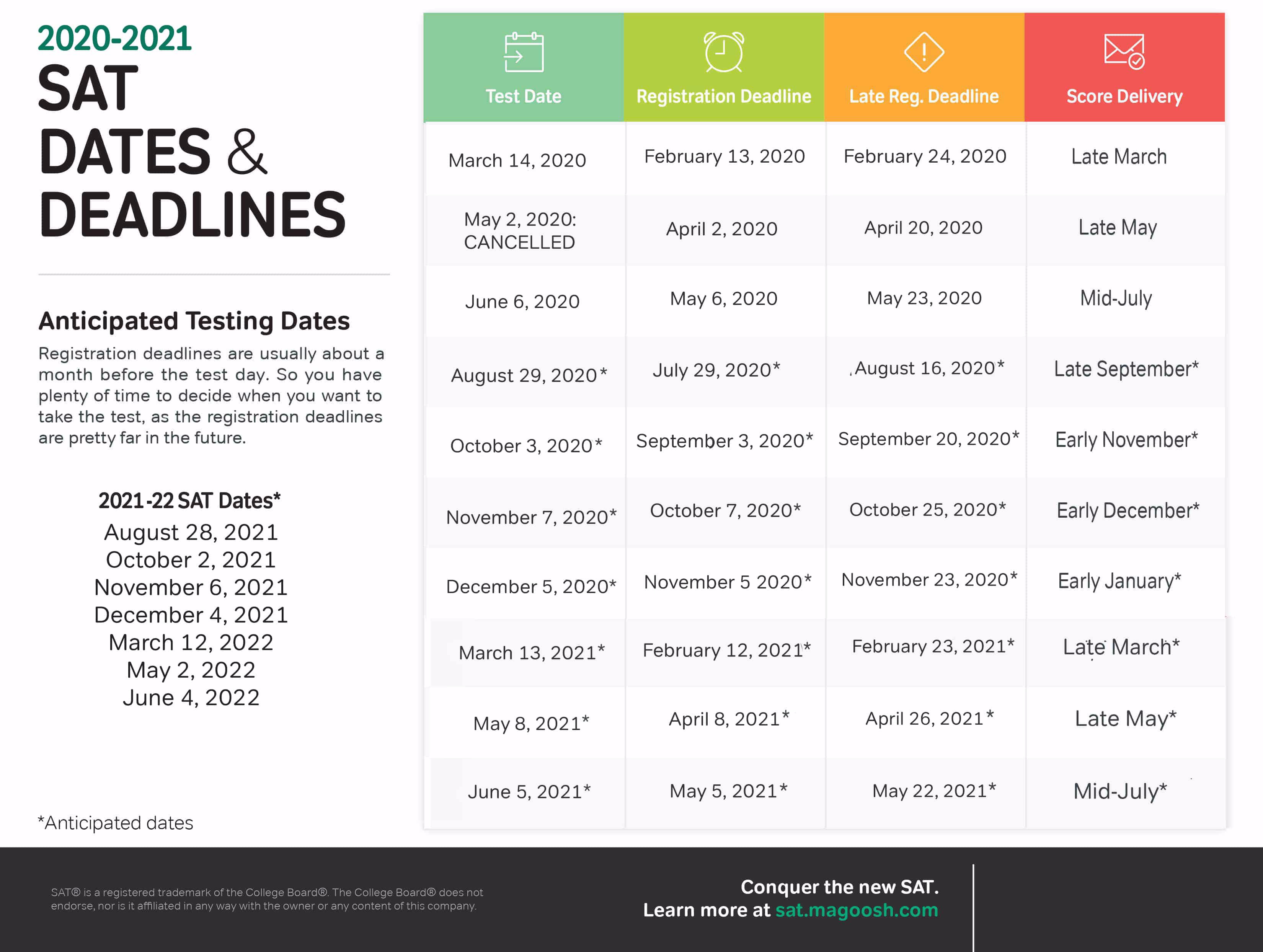 SAT 2020-2021 Test Dates
