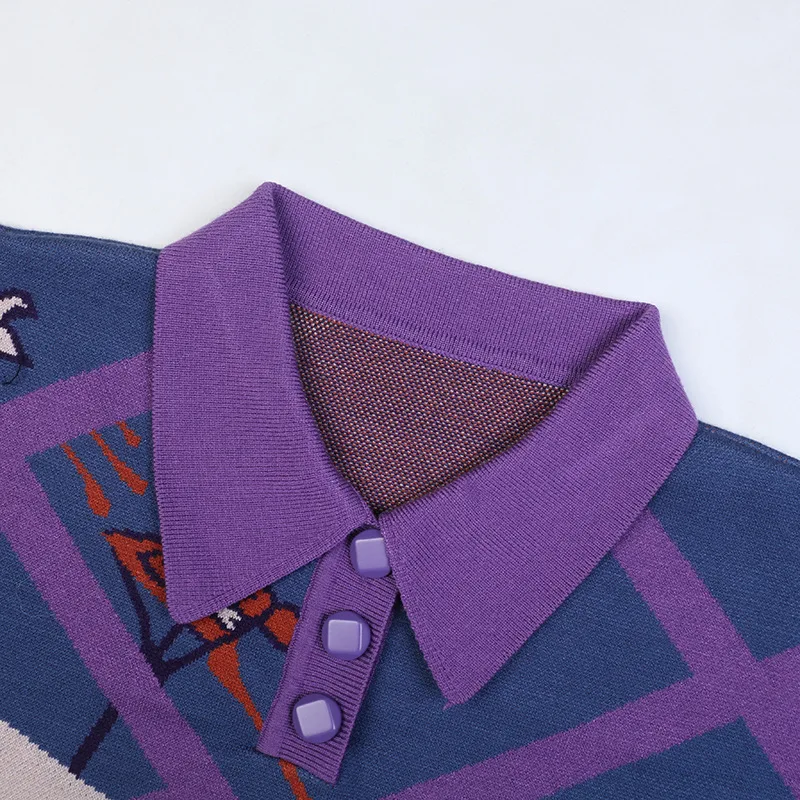 «SAYTHEN Spring Autumn New Retro Contrast Purple Color Striped Cartoon Head Cute Style Knitted Dress Sweater Midi Skirt YS22191» по лучшей цене на рынке! Всего за 37$ (3515рублей)