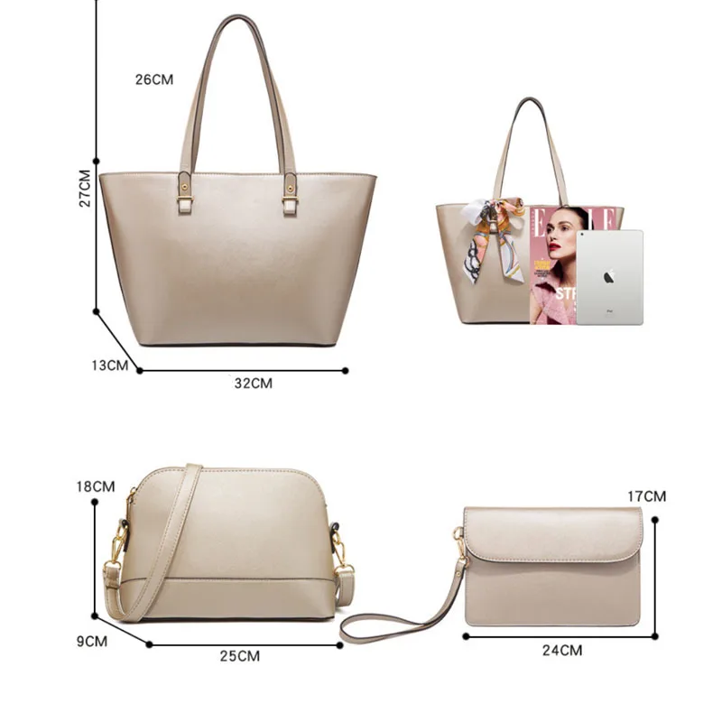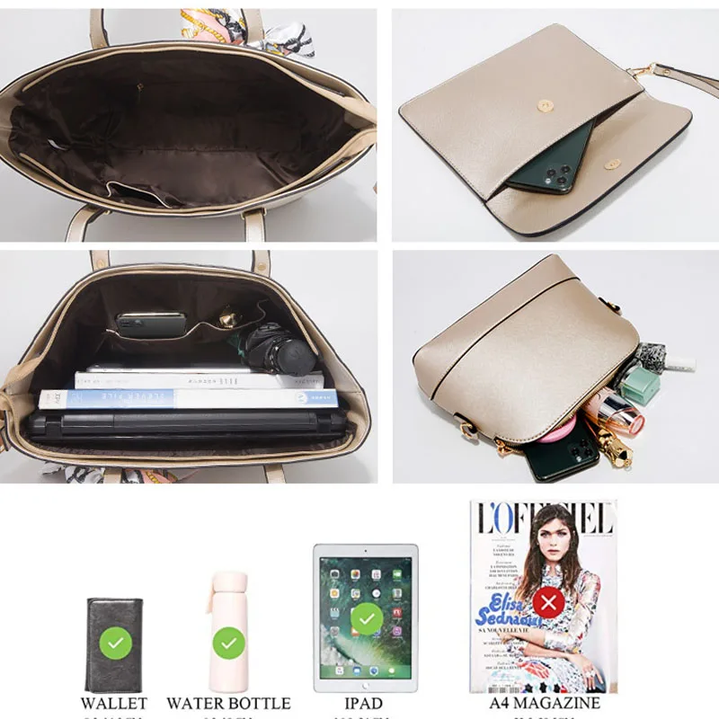 «SCOFY FASHION 3 Pieces Set Purses and Handbags Luxury Chic Large Capacity Scraf Shoulder Bags for Women Solid Tote Shopping Bags» по лучшей цене на рынке! Всего за 33$ (3135рублей)
