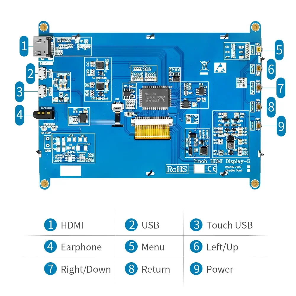 SCULPTOR 7 inch 1080P Portable Monitor 500Cd/m² IPS A+ Touch Screen Monitor Compatible With Raspberry Pi,Android,Windows,Linux - Купить с бесплатной доставкой