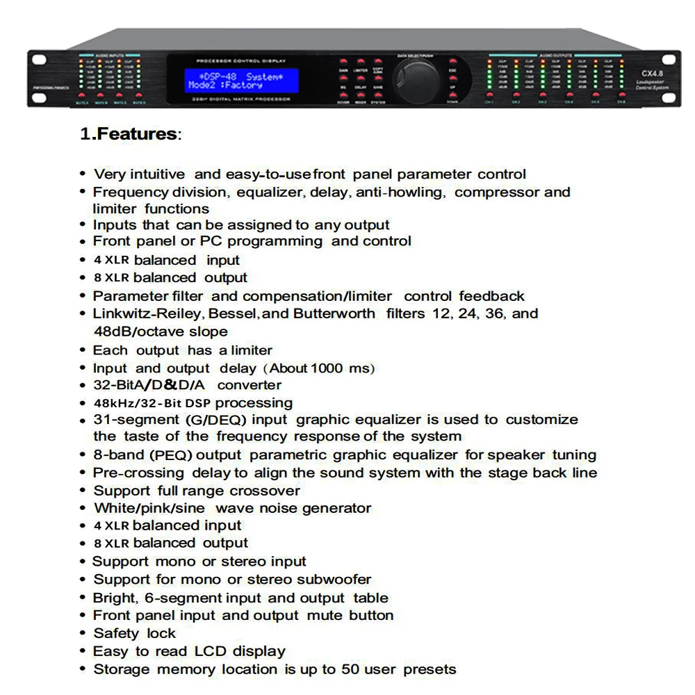SENMICRE CX4.8 Complete Loudspeaker Management System 4IN 8OUT Digital Processor Professional Driver Rack Pro Audio Processor - Купить с бесплатной доставкой
