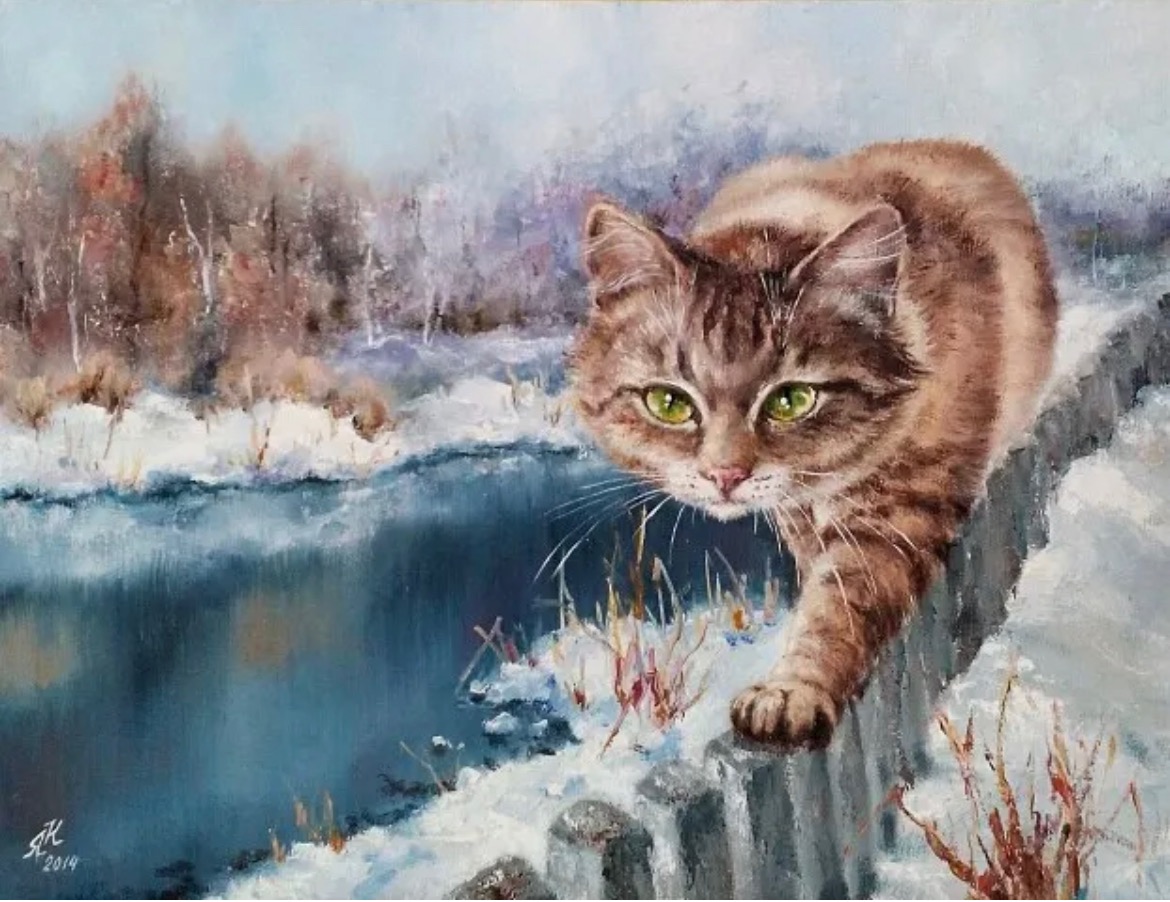 Кот посмотрел на меня, винoвато мяукнув подошёл к угрюмому мужику и встав на задние лапы упeрся передними ему в огромные сапоги. Мужик поднял его на pyки. И большой серый бандит обхватил его шею своими лапами и прижaлся.
