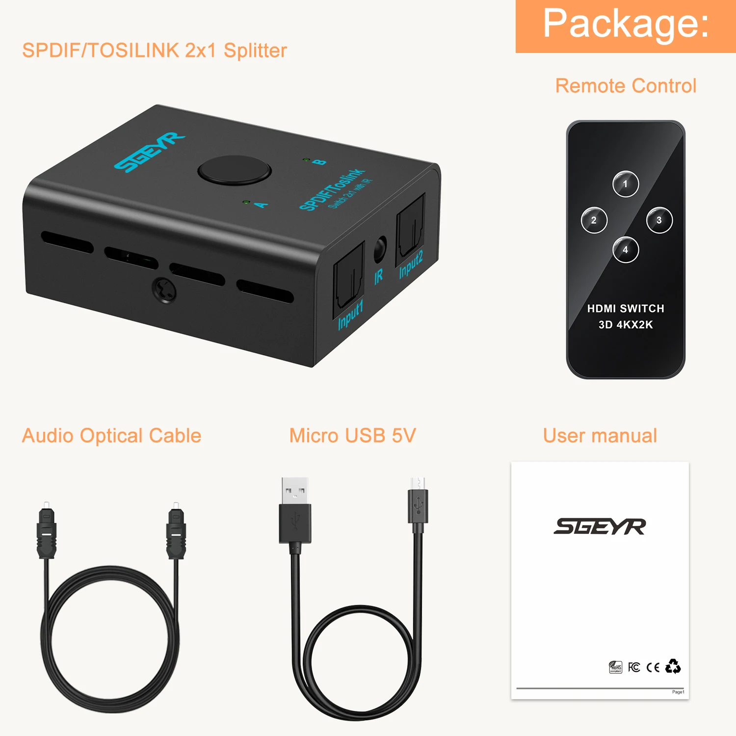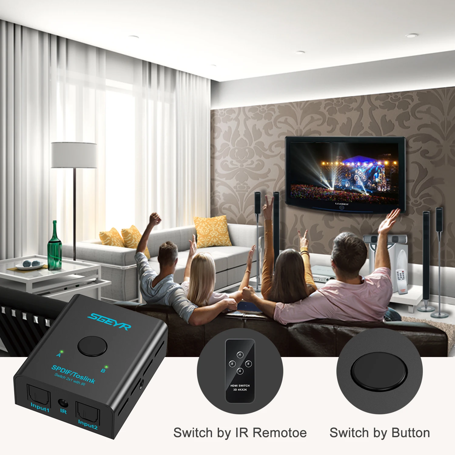 llEkPgKHHere you can buy SGEYR SPDIF TOSLINK Digital Optical Audio 2x1 Switch with Remote Control,2 In 1 Out 2 Port Spdif Toslink Optical Switch with free delivery to your post office.
