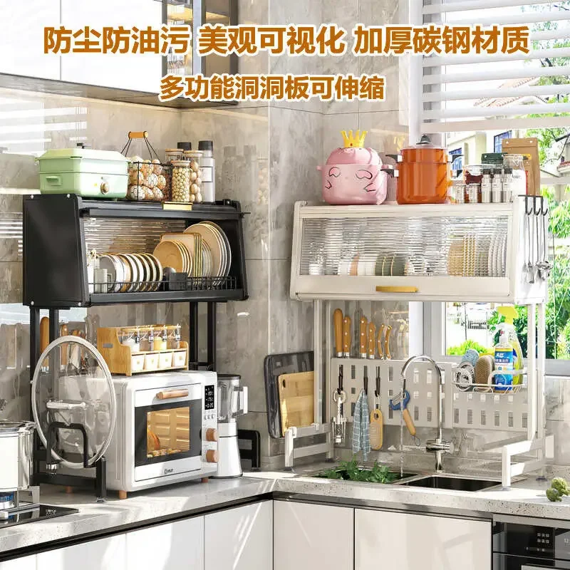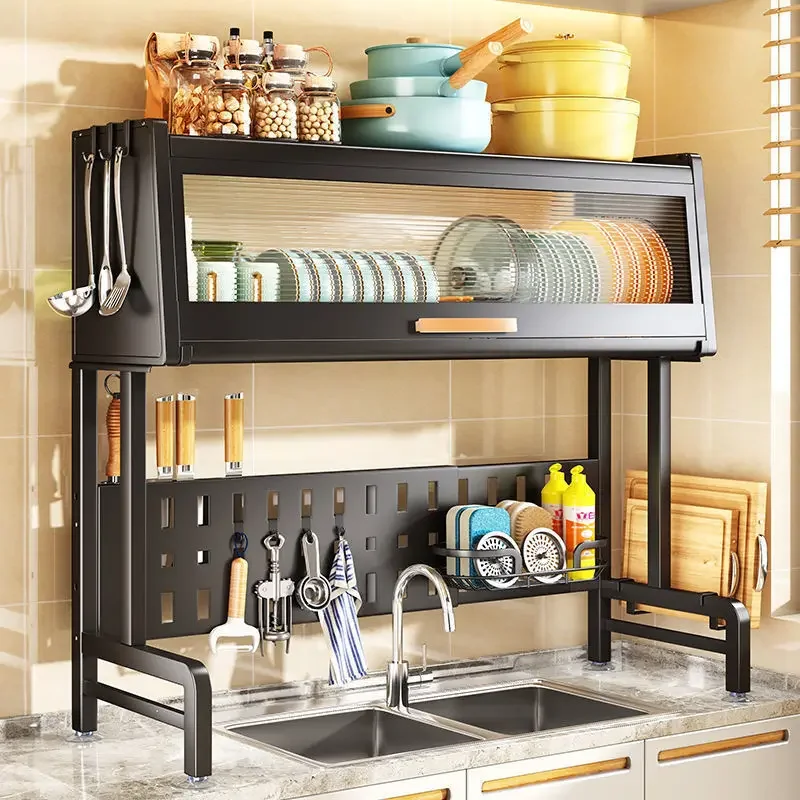 SH Aoliviya Official New Kitchen Sink Storage Shelf Dish Rack Countertop Retractable Dish with Door Dish Storage Rack Cupboard L - Купить с бесплатной доставкой