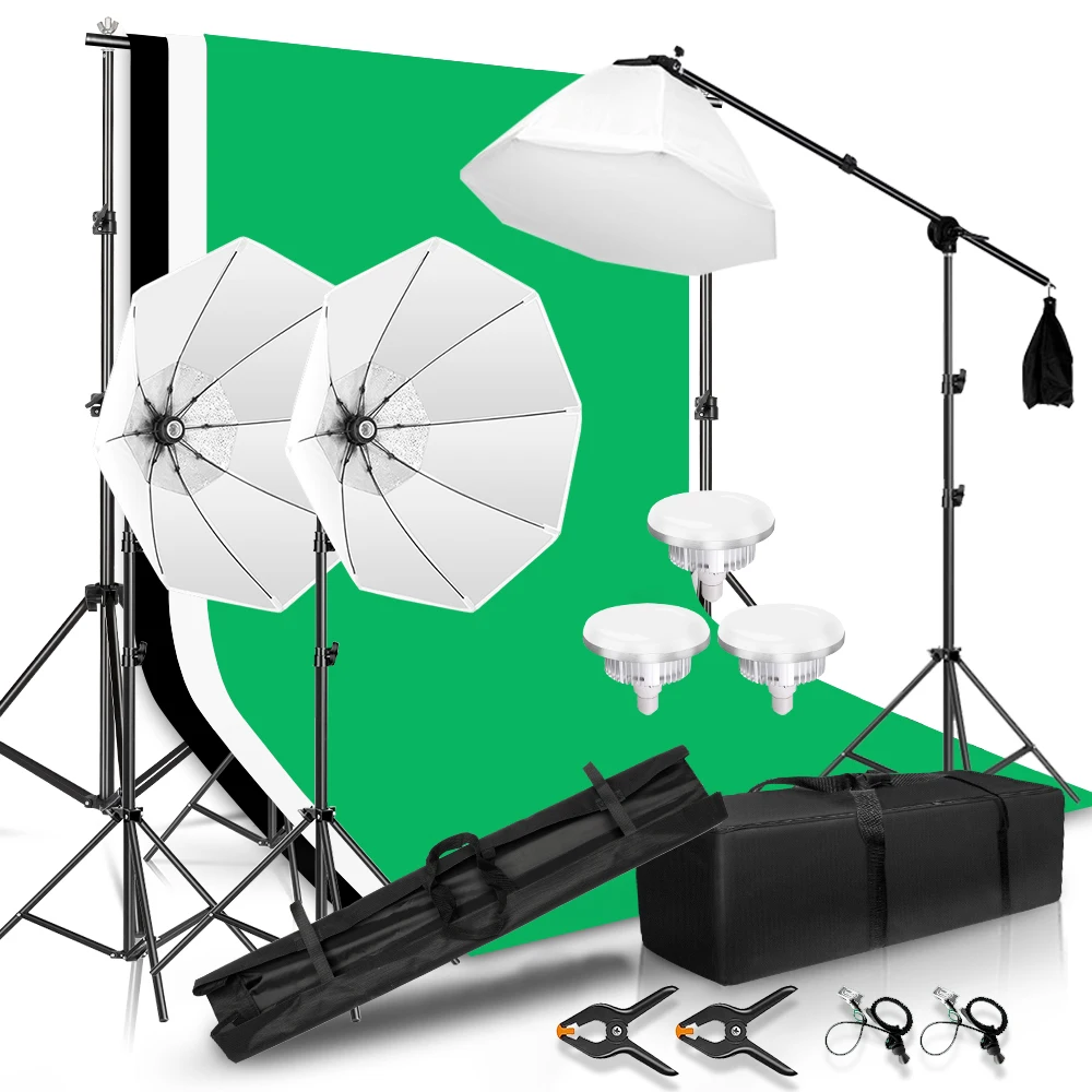 SH Photography Studio Set With 2x2/2x3 Backdrop Stand 3pcs Bulbs&3pcs Softbox Suitable For Photography Studio, Photo Studio - Купить с бесплатной доставкой