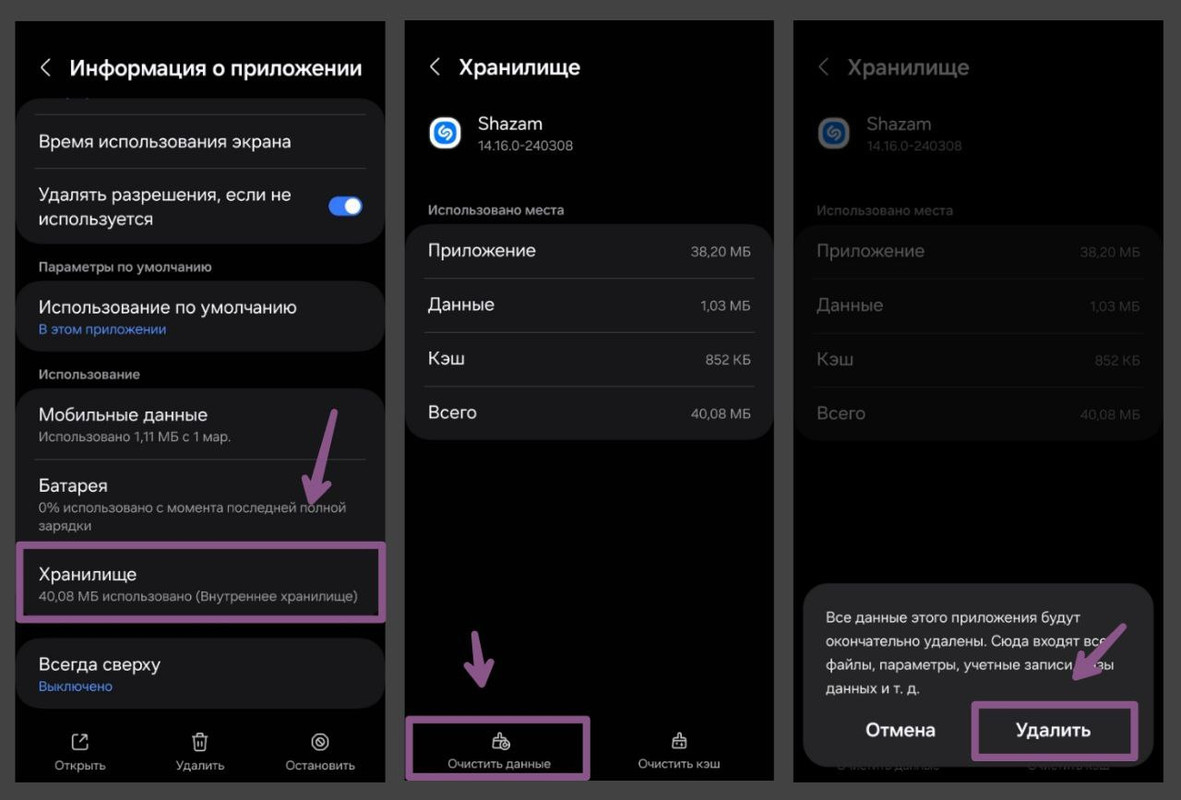 6️⃣ Нажимаем на «Очистить данные» и нажимаем «Удалить» или «Да» для очистки данных.