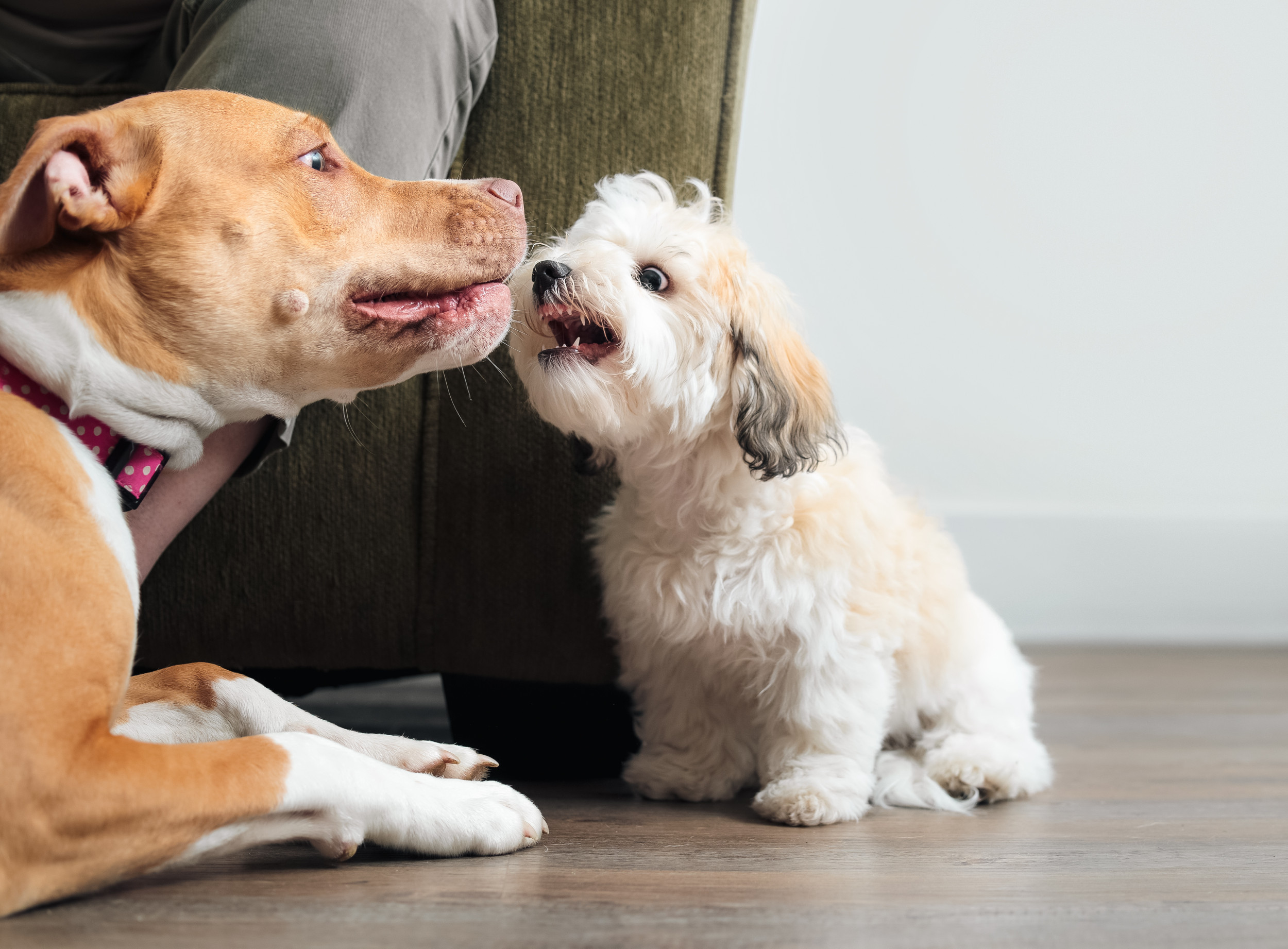 Щенок рычит на хозяина