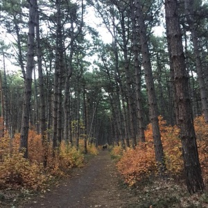 Осенний вид на Щепкинский лес . С 2014 года территория Щепки относится к городским лесам . Въезды в лес перекрыты или перекопаны (и правильно) .