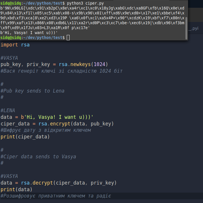 Ось якось так це і працює, як перетворювати ключі в байти та навпаки - домашнє завдання). У алгоритму є деякі обмеження, тому його часто використовують у парі з простим шифруванням типу AES(лінк на гіт хаб, код на Golang, але ж ви в мене розумні).
