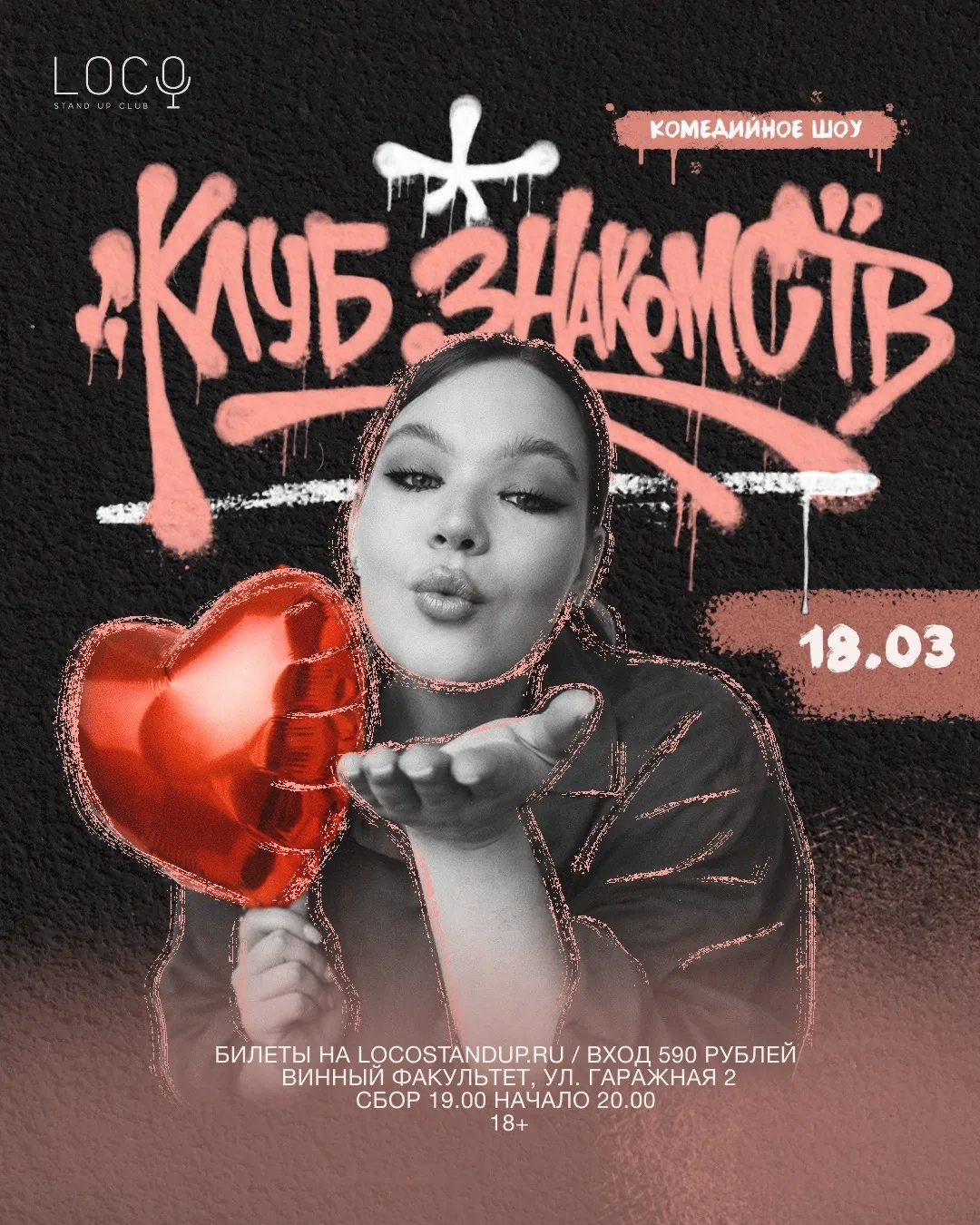 Это интерактивное шоу для одиноких, предлагающее нестандартный формат знакомств через юмор и забавные испытания, разработанные комиками. Участие добровольное, предназначено для лиц старше 18 лет, стоимость – 590 ₽.