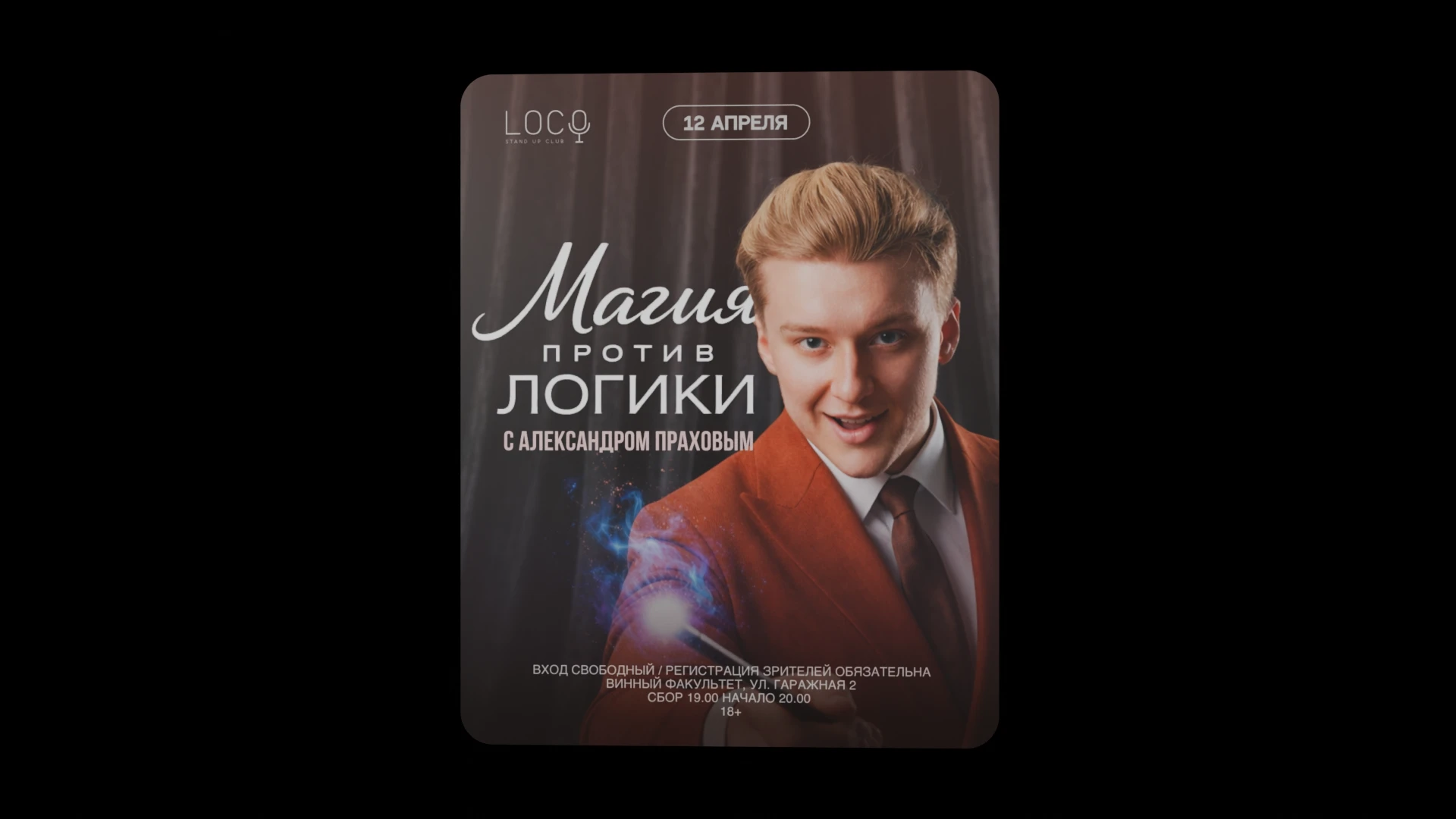 Мероприятие предназначено для лиц старше 18 лет. В шоу участвует иллюзионист Александр Прахов.