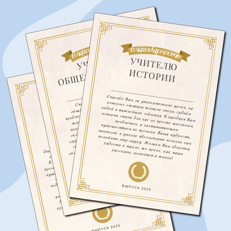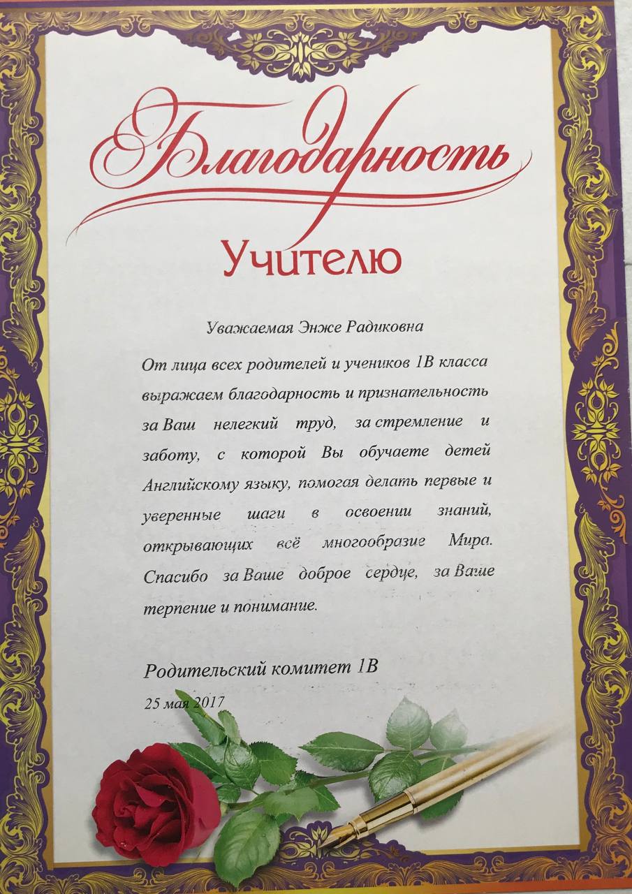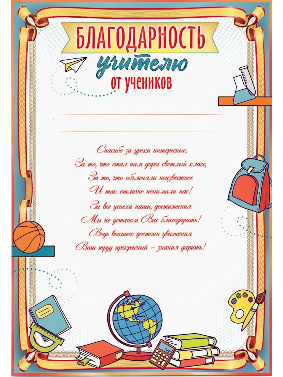 Шаблон благодарности классному руководителю