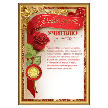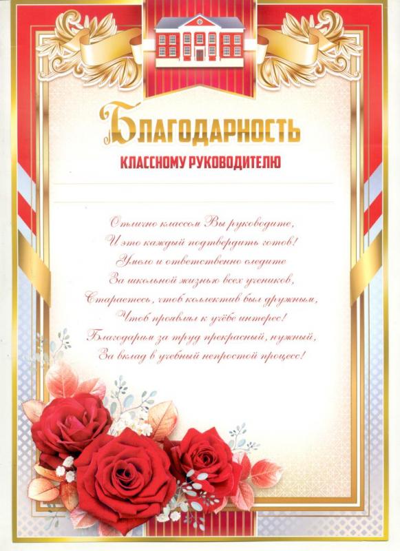 Шаблон благодарности классному руководителю