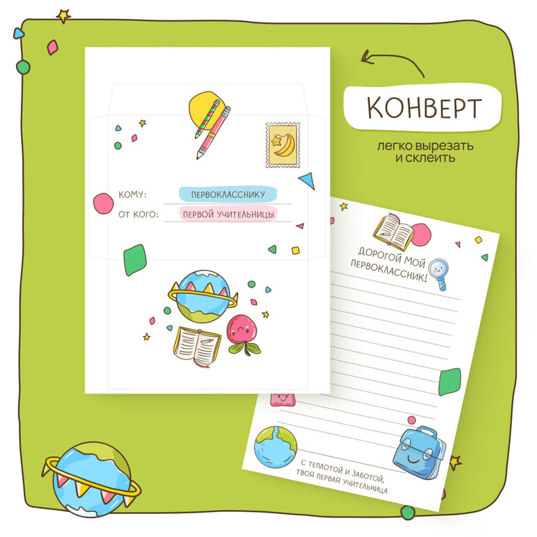 Шаблон конверта первокласснику от учителя