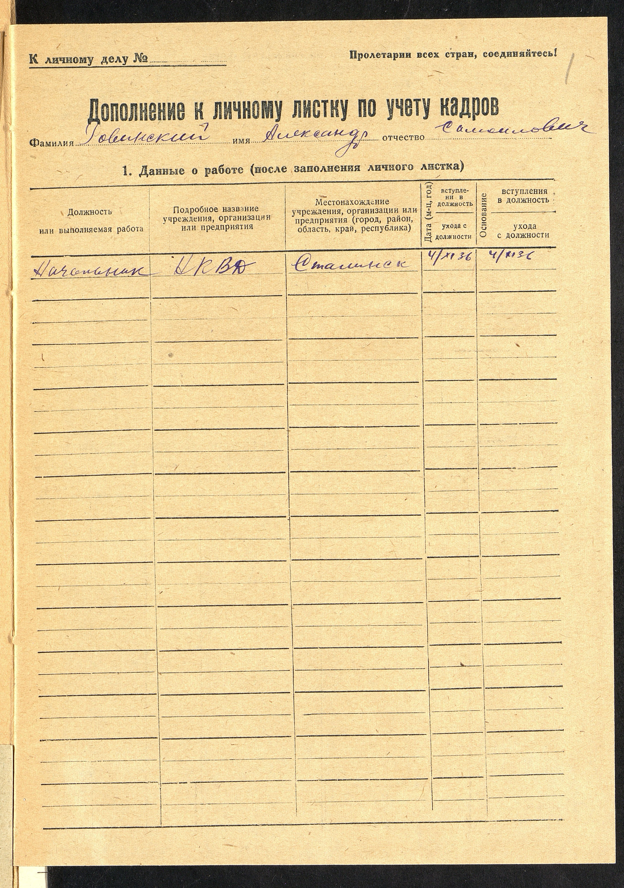 Шаблон личного дела