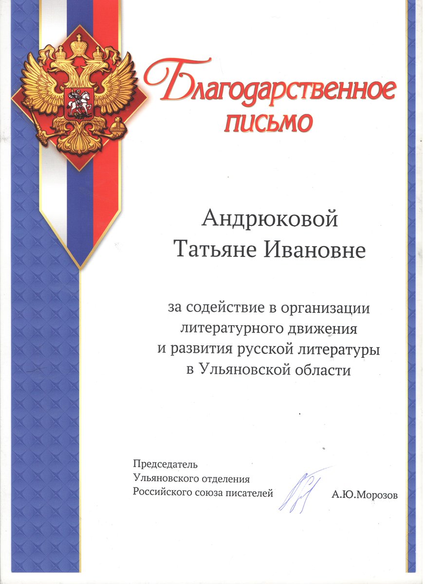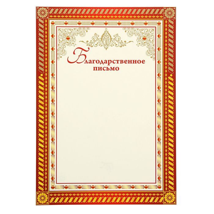 Шаблон письма благодарности