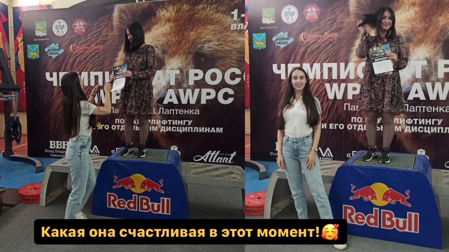 После чего она участвовала в соревнованиях по пауэрлифтингу и заняла первое место!