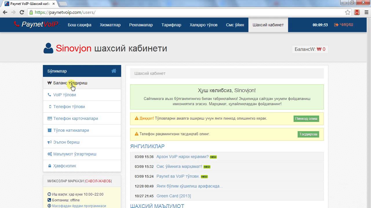 Шахсий кабинетга кириш
