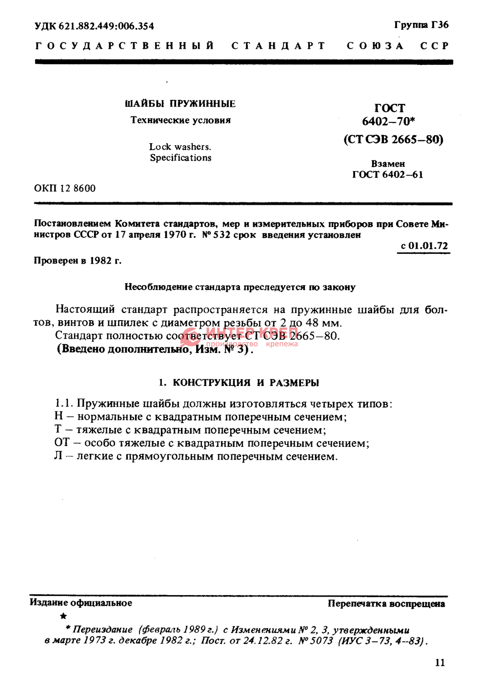 PDF Скачать ГОСТ 6402-70 Шайбы пружинные . Технические условия