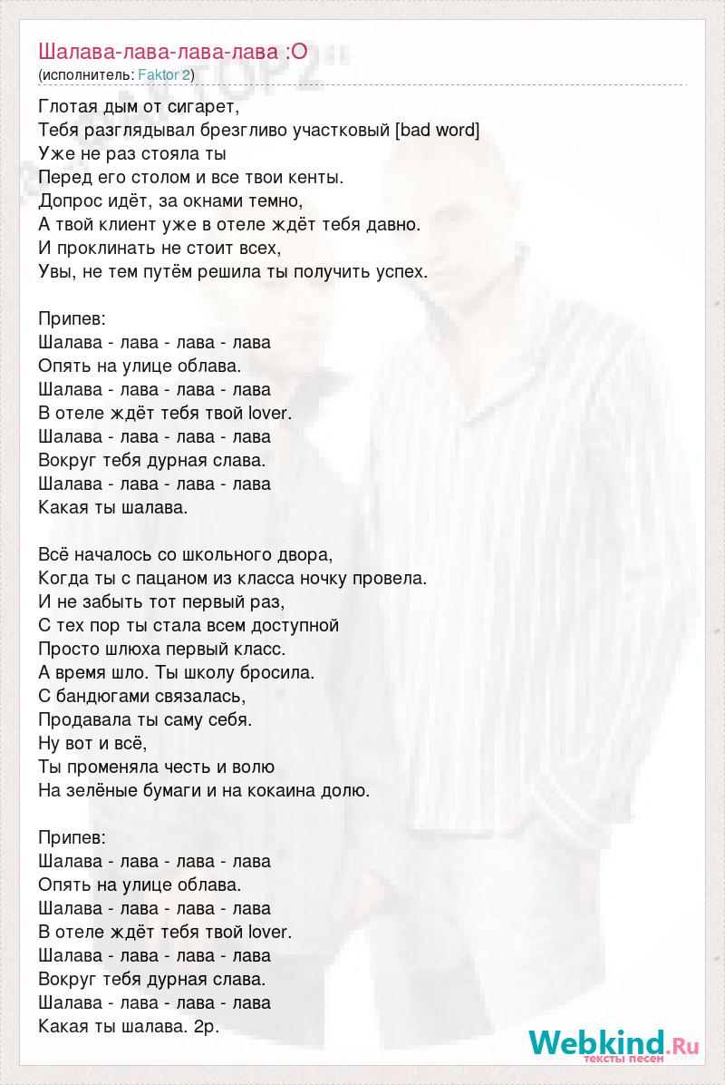 Шалава - Фактор-2 - правильный текст песни