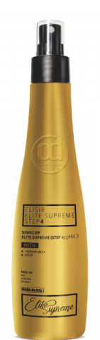 Распылить эликсир Elite Supreme на чистые, влажные или сухие волосы, приступить к желаемой укладке.