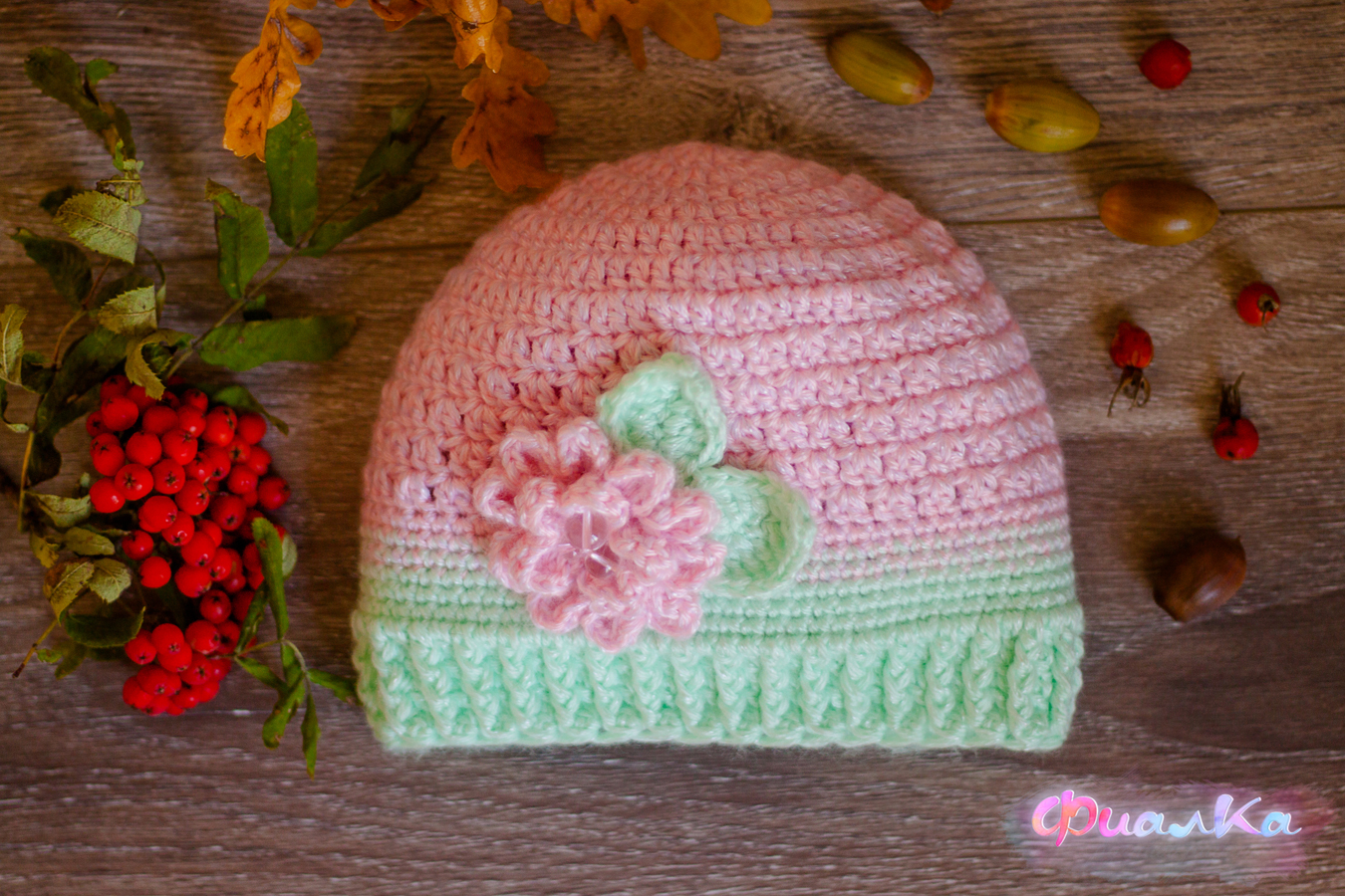 Шапка для девочки крючком на осень