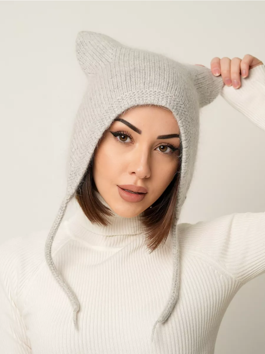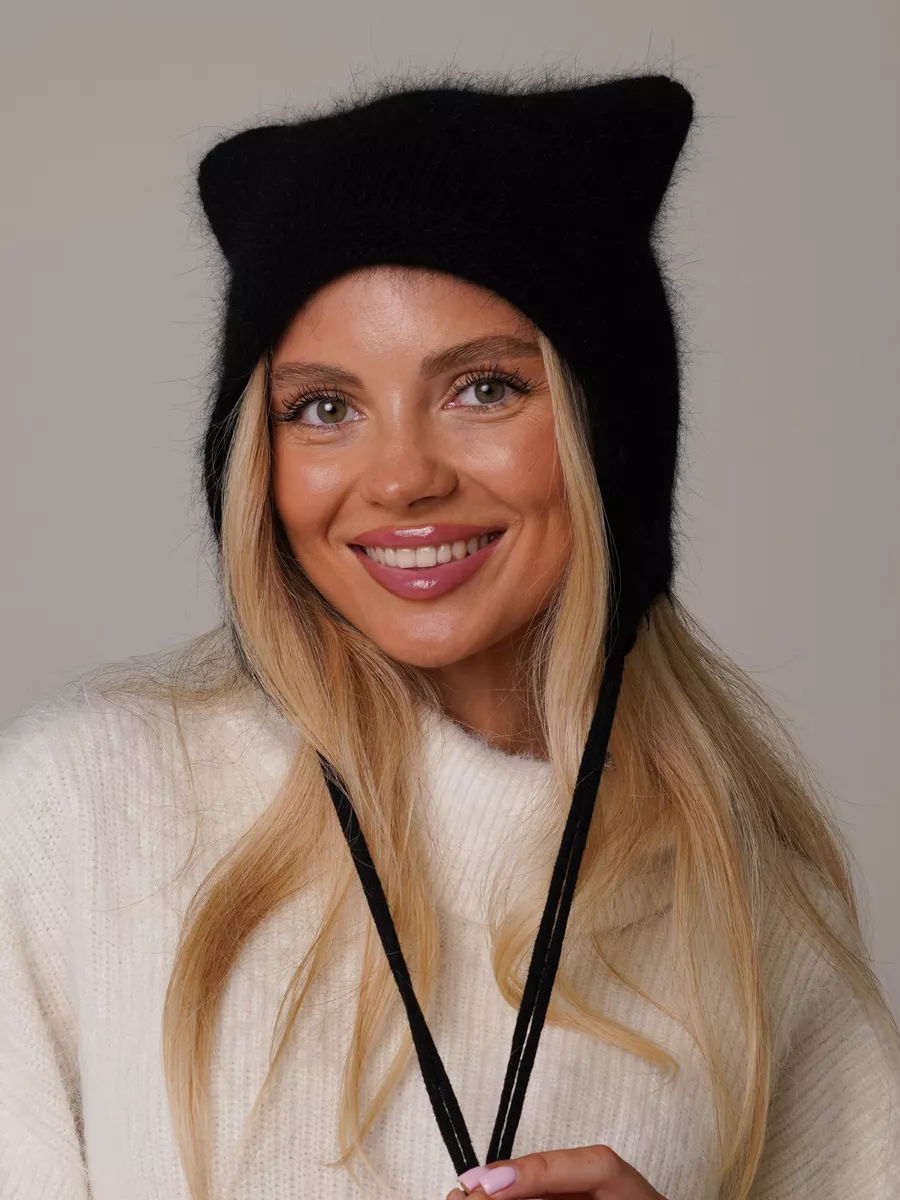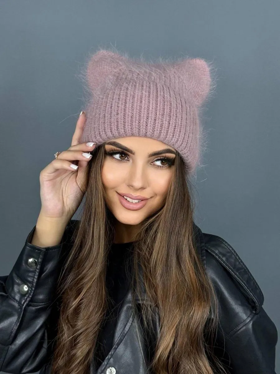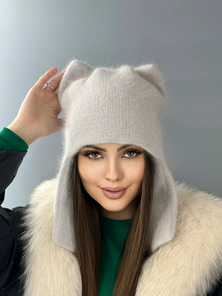 Шапка с ушками из ангоры 89 фото