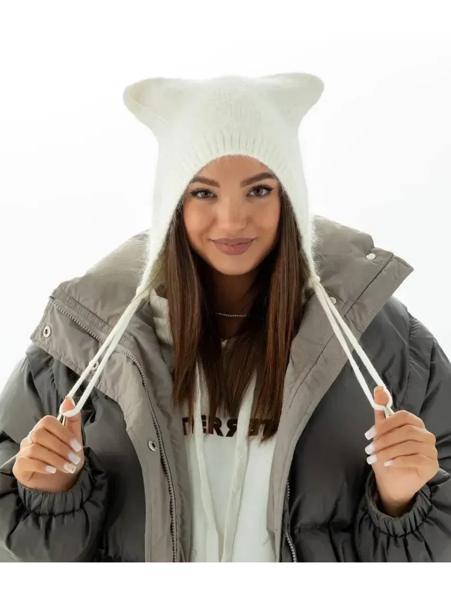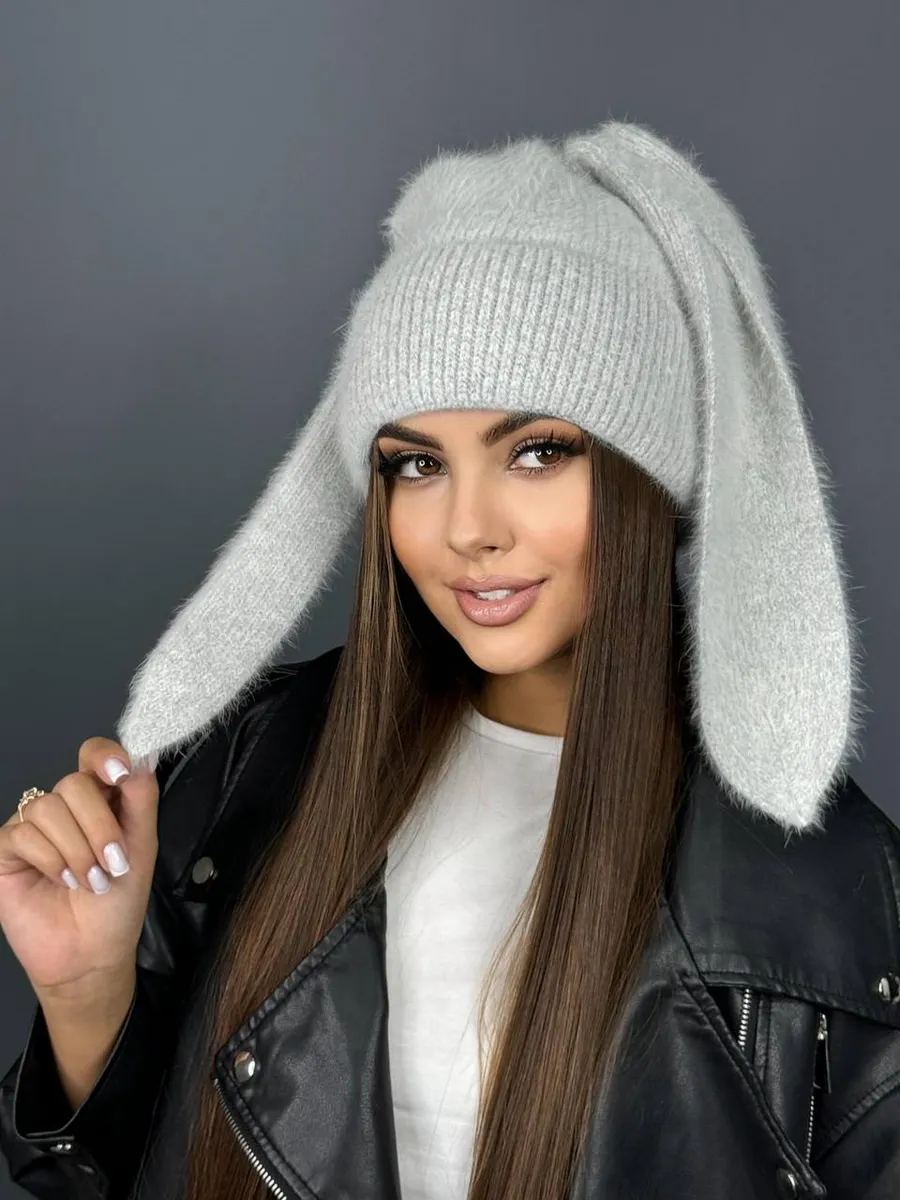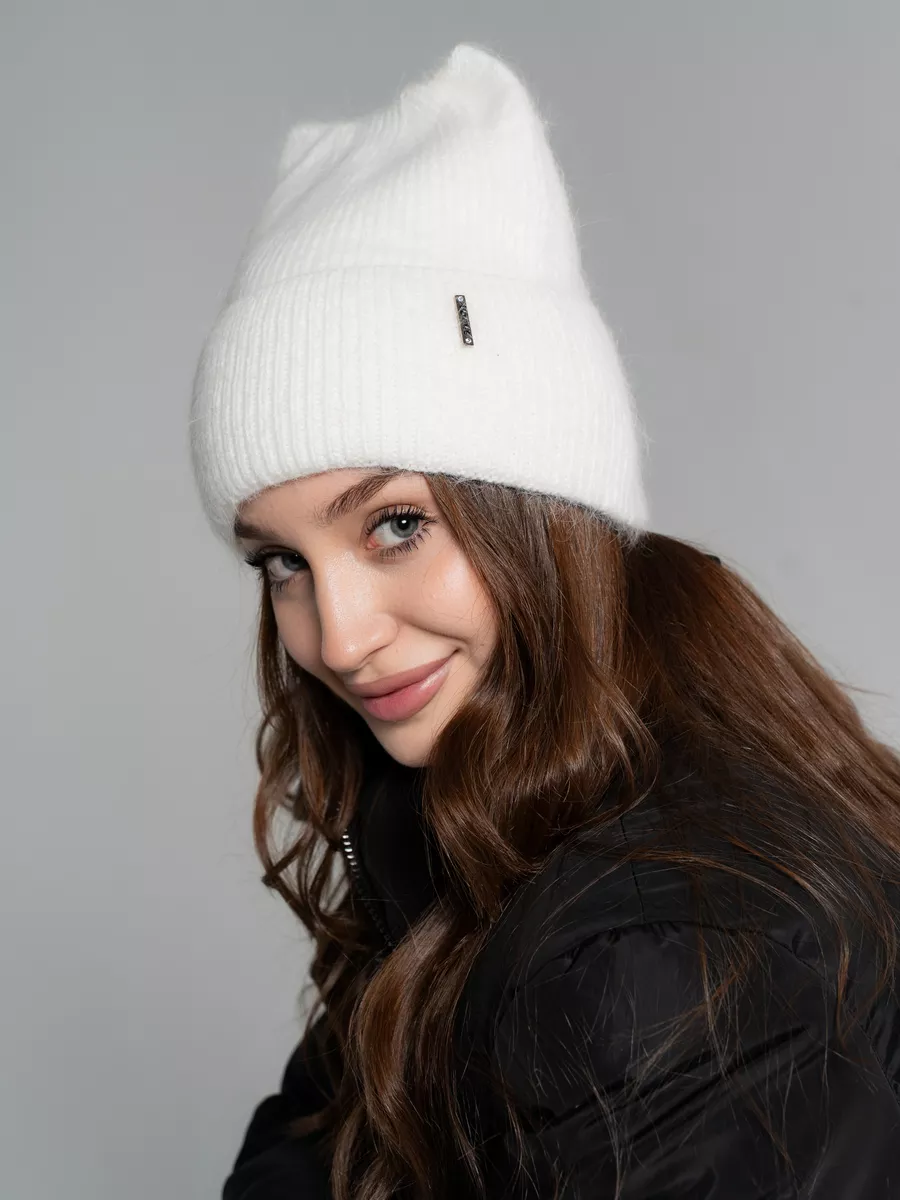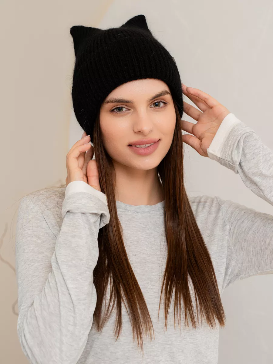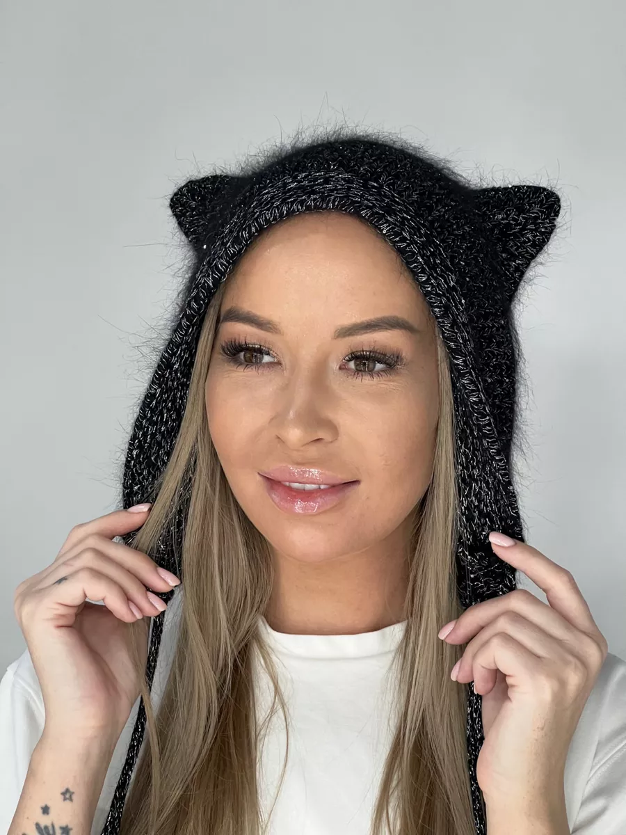 Шапка с ушками из ангоры 89 фото