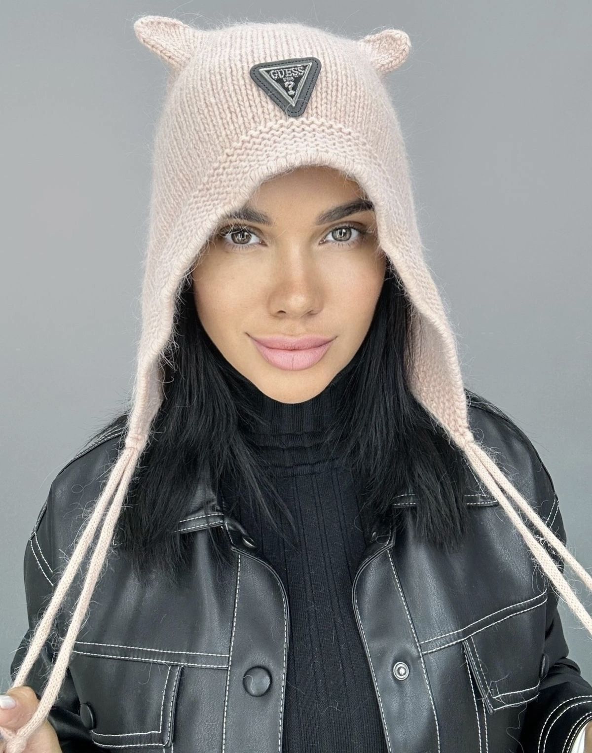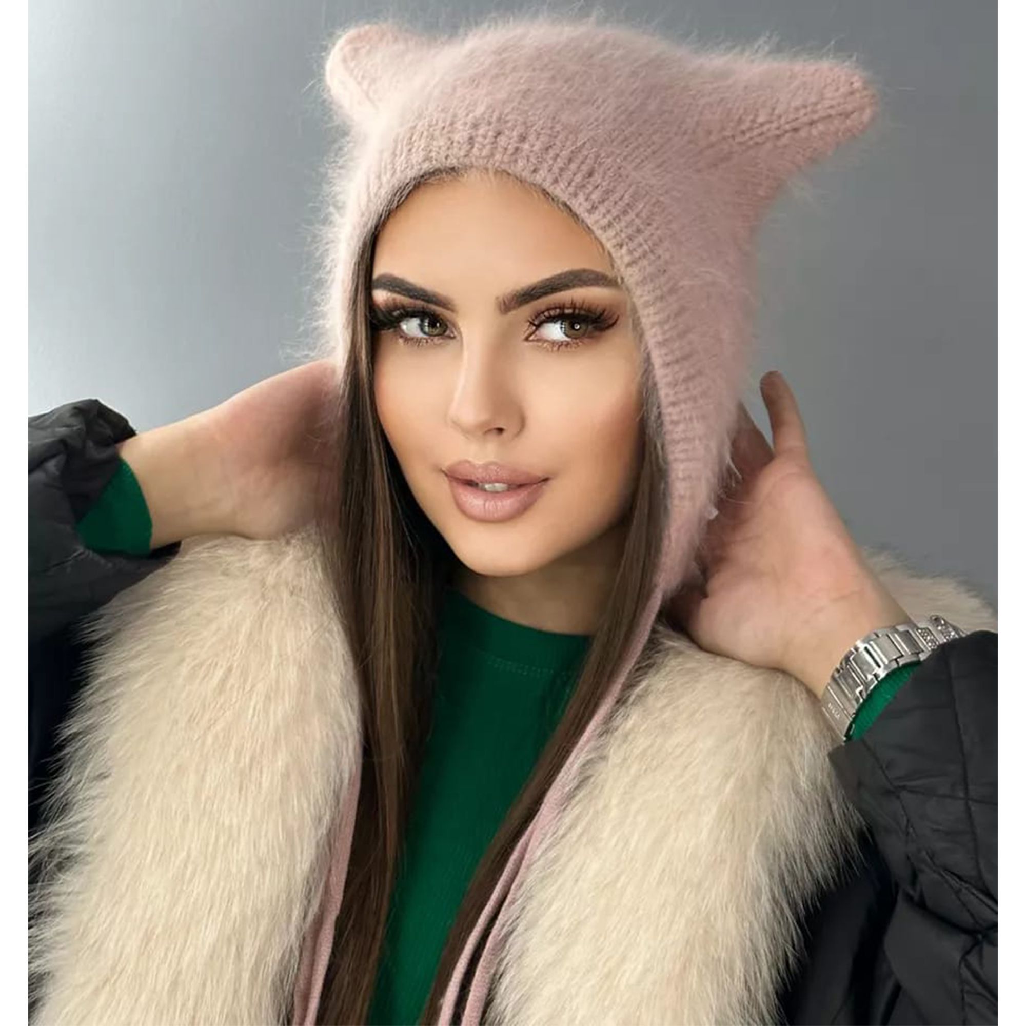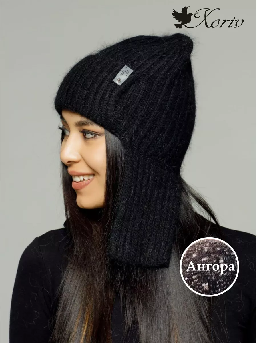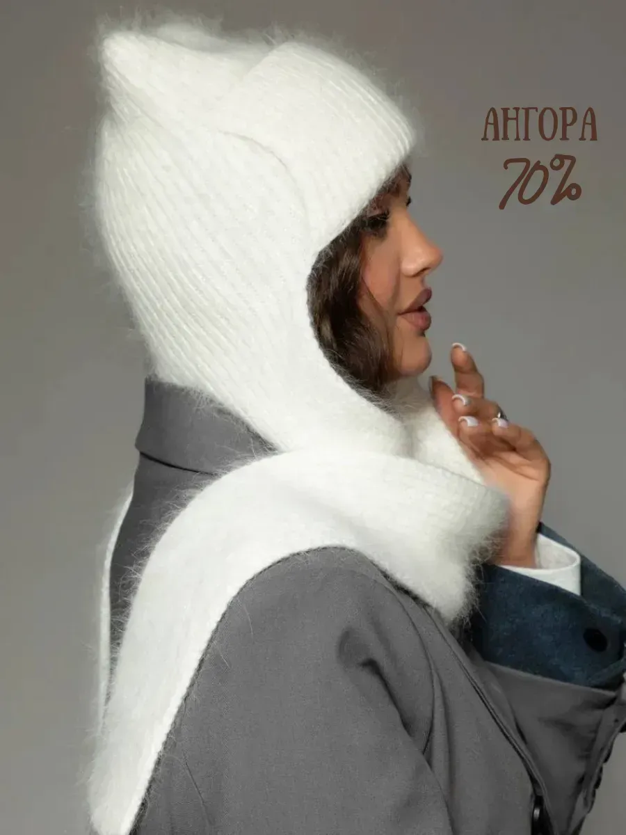 Шапка с ушками из ангоры 89 фото