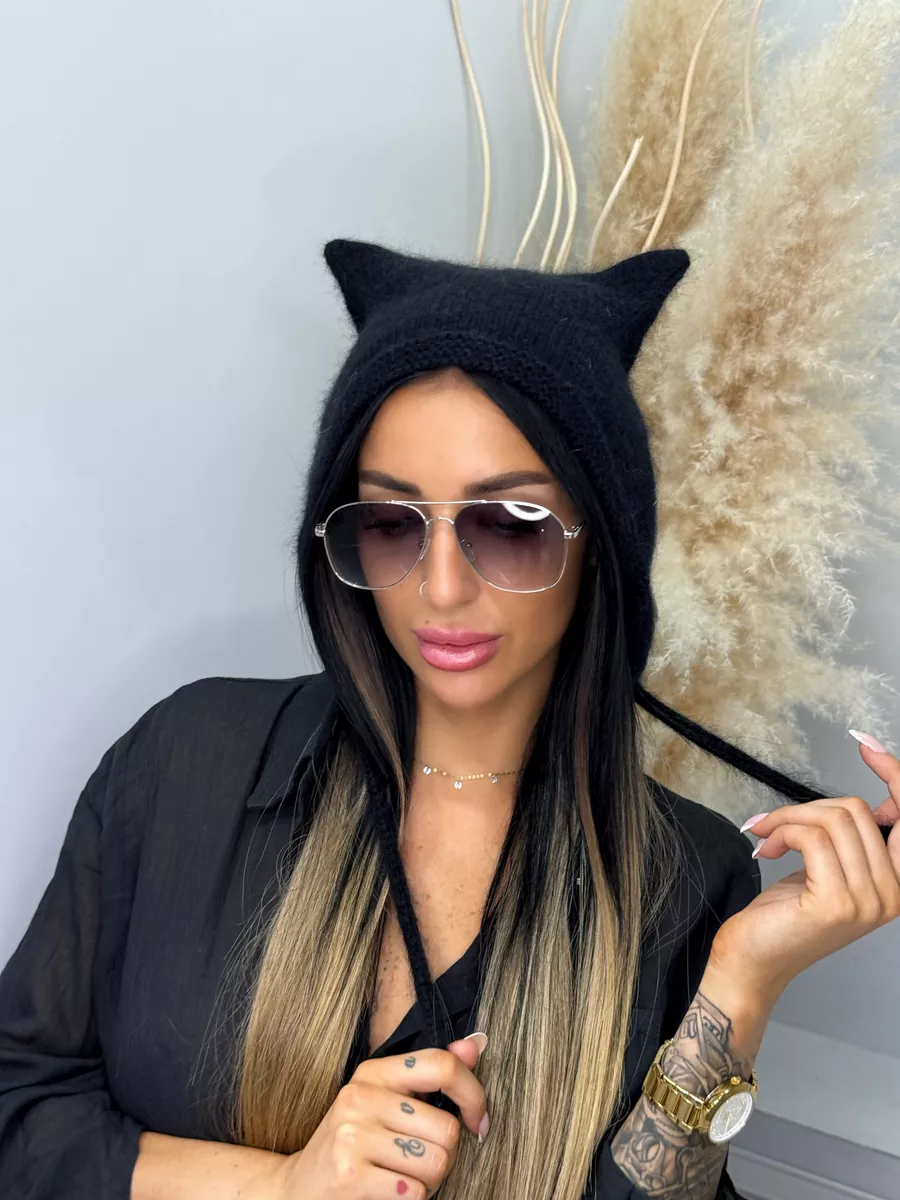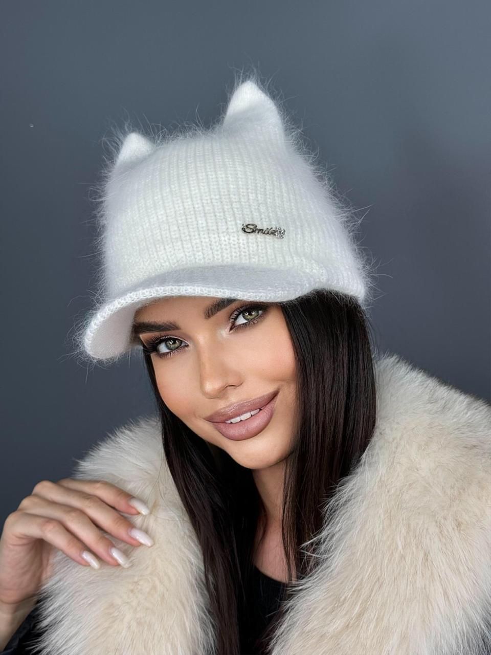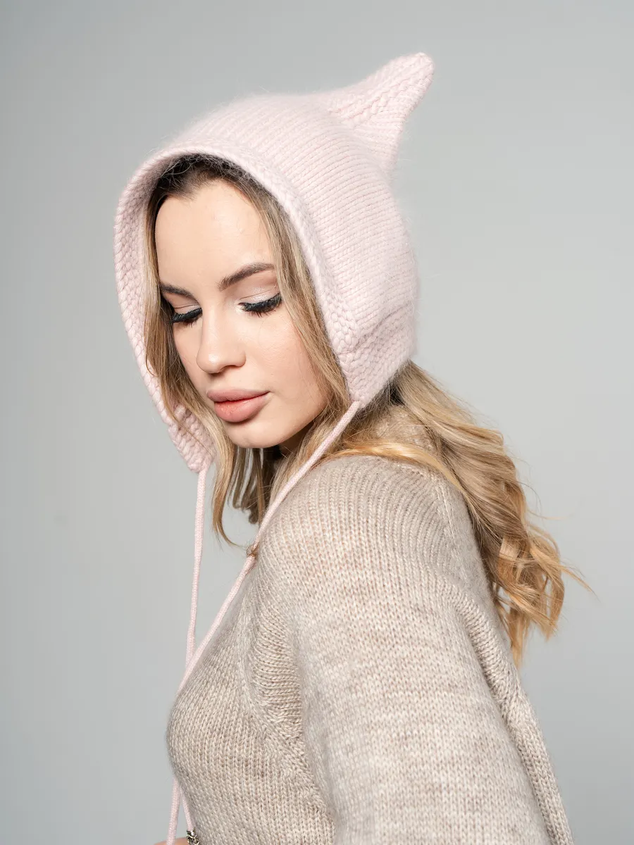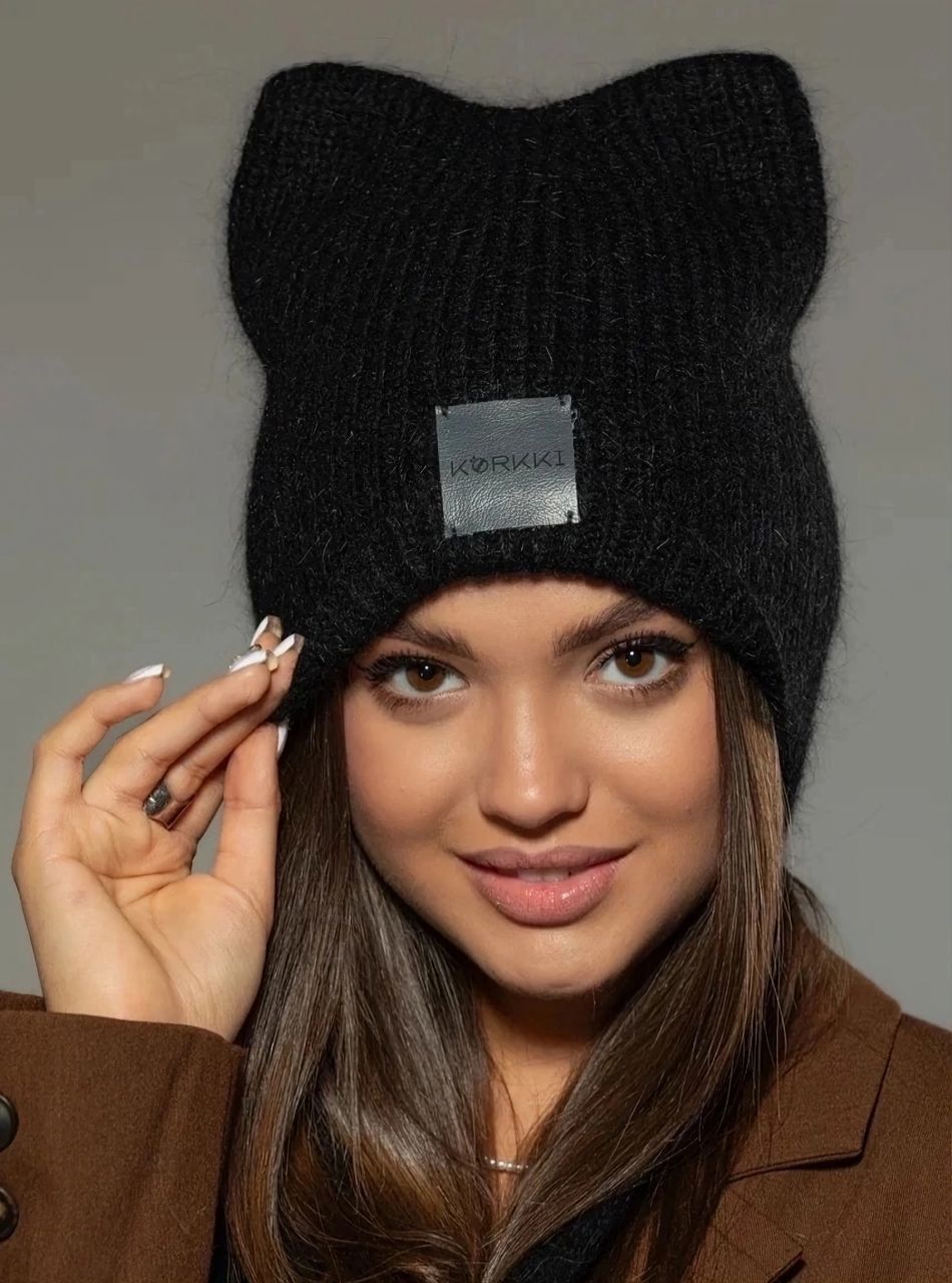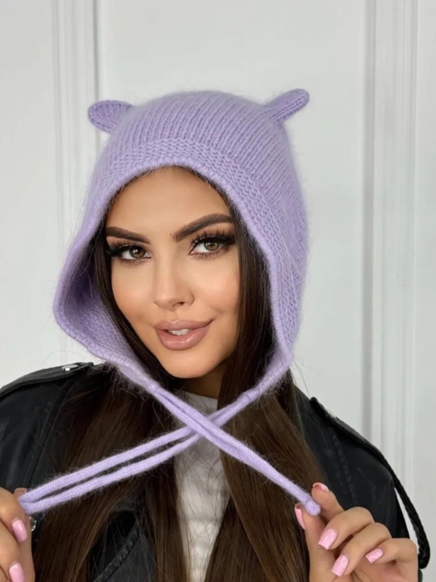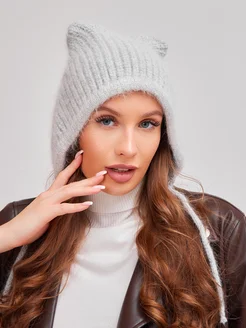 Шапка с ушками из ангоры
