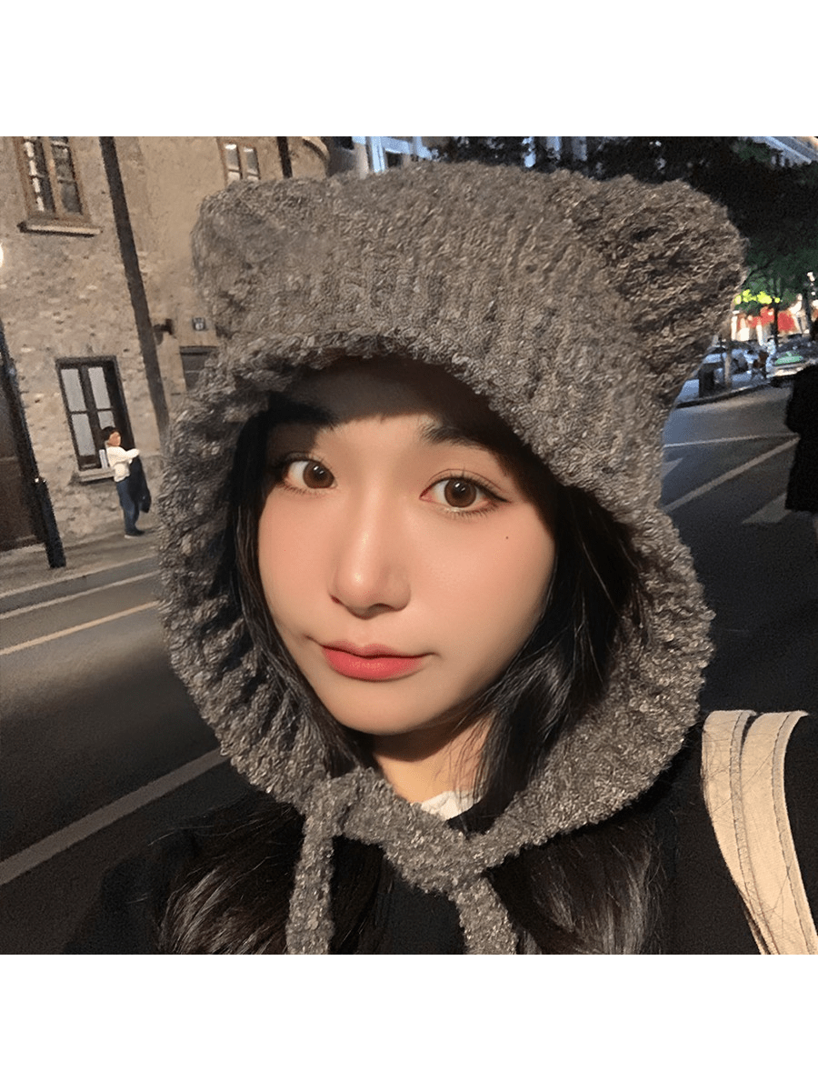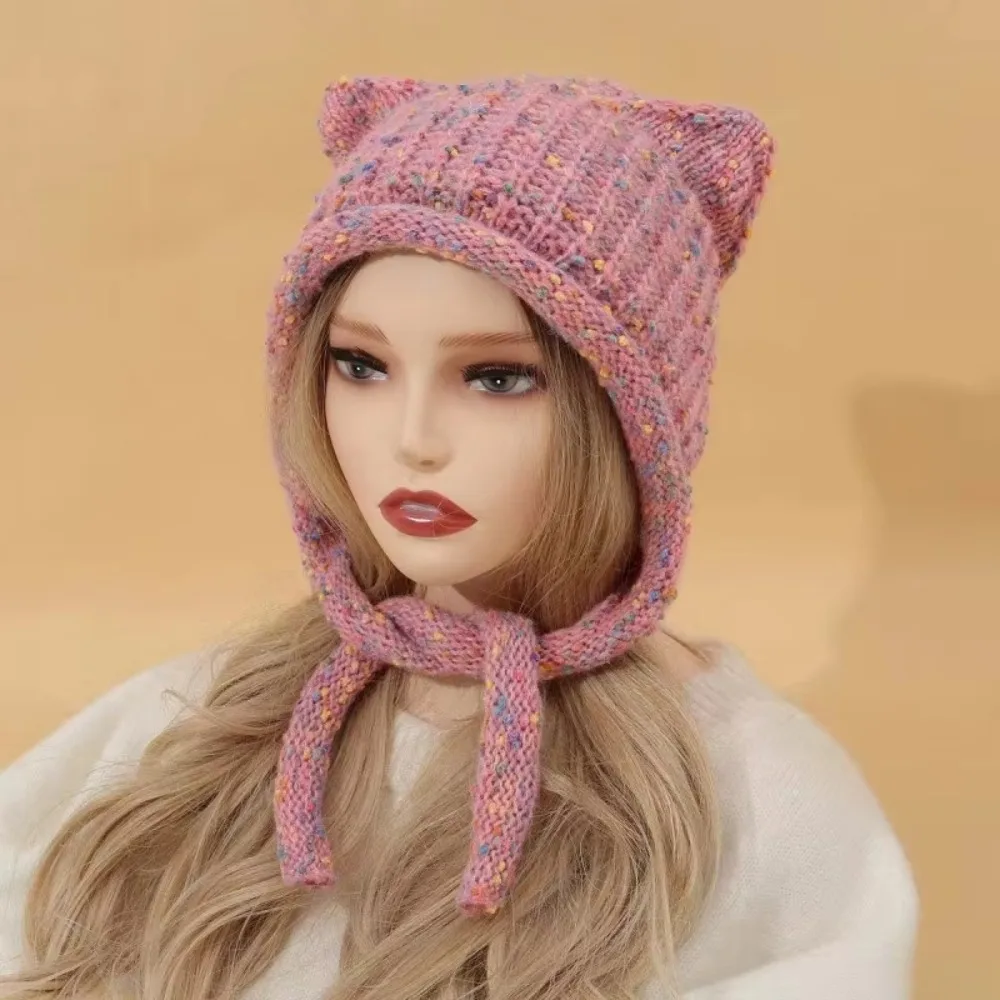 Шапка с вязанными ушами 142 фото