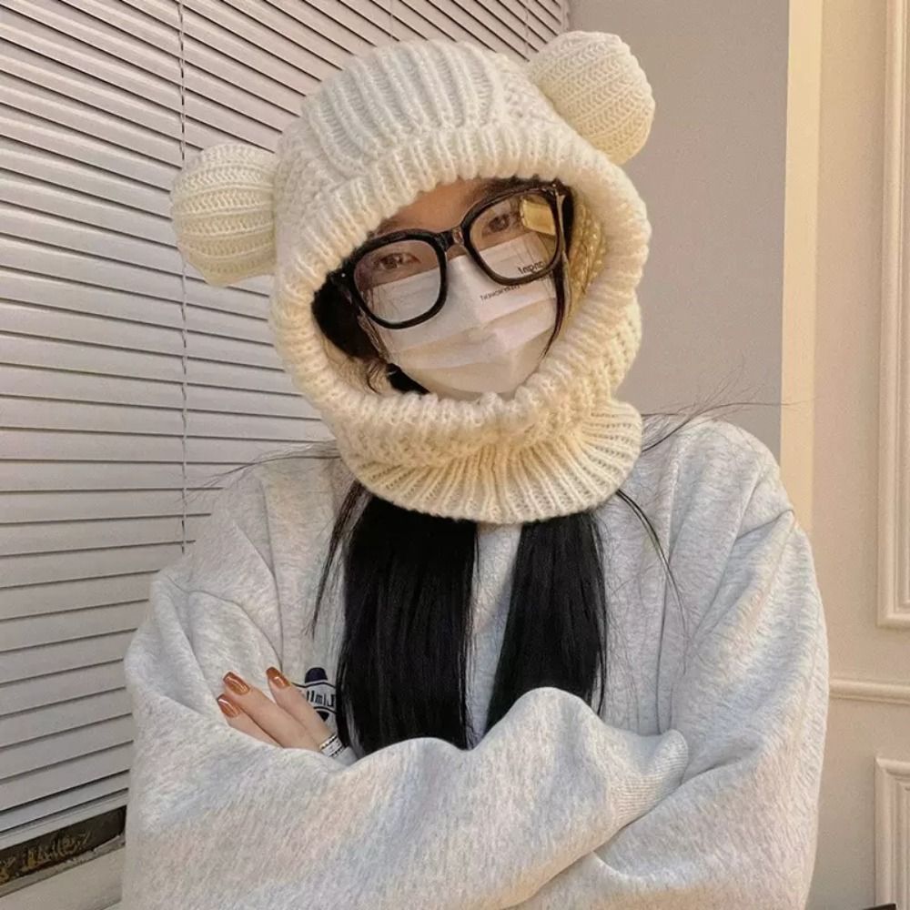 Шапка с вязанными ушами