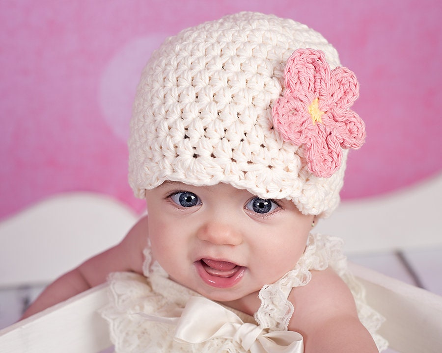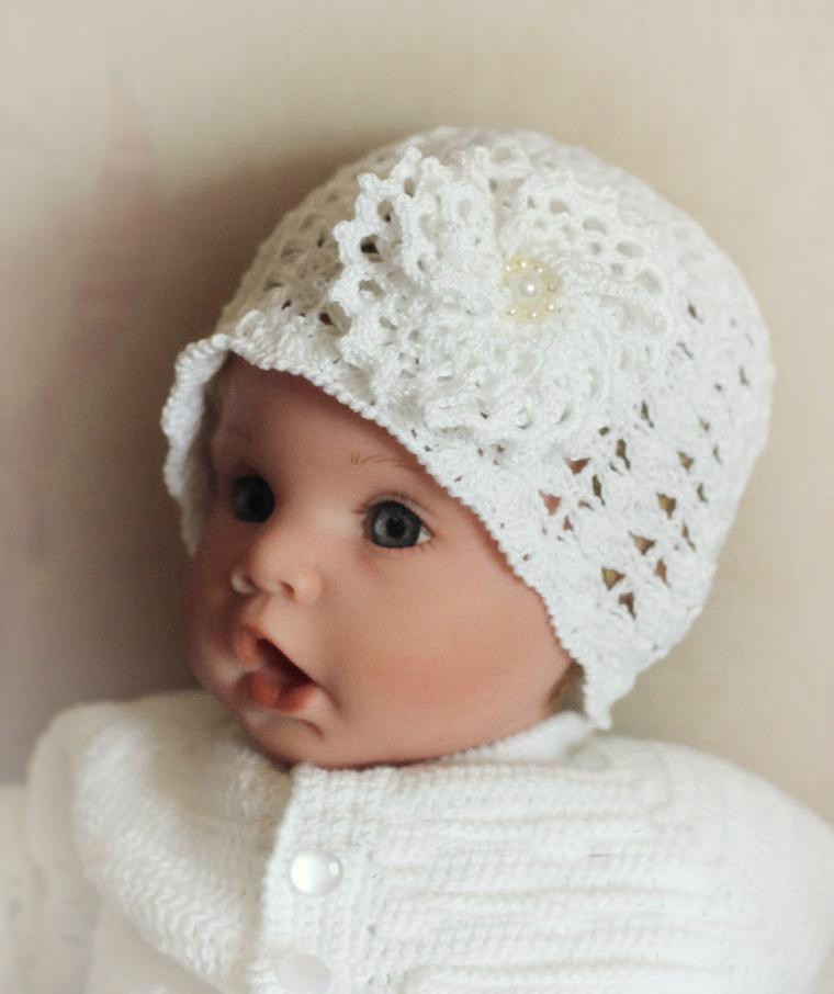 Шапочки крючком для девочек новорожденным