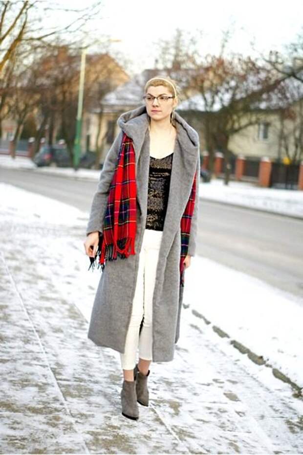 Шарф К Серому Пальто Фото