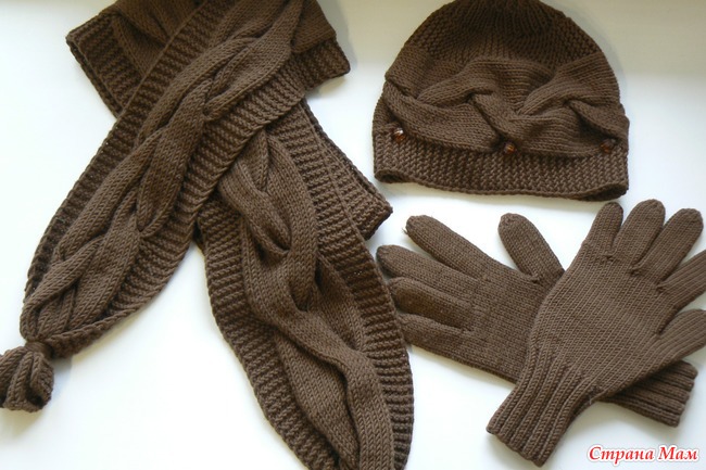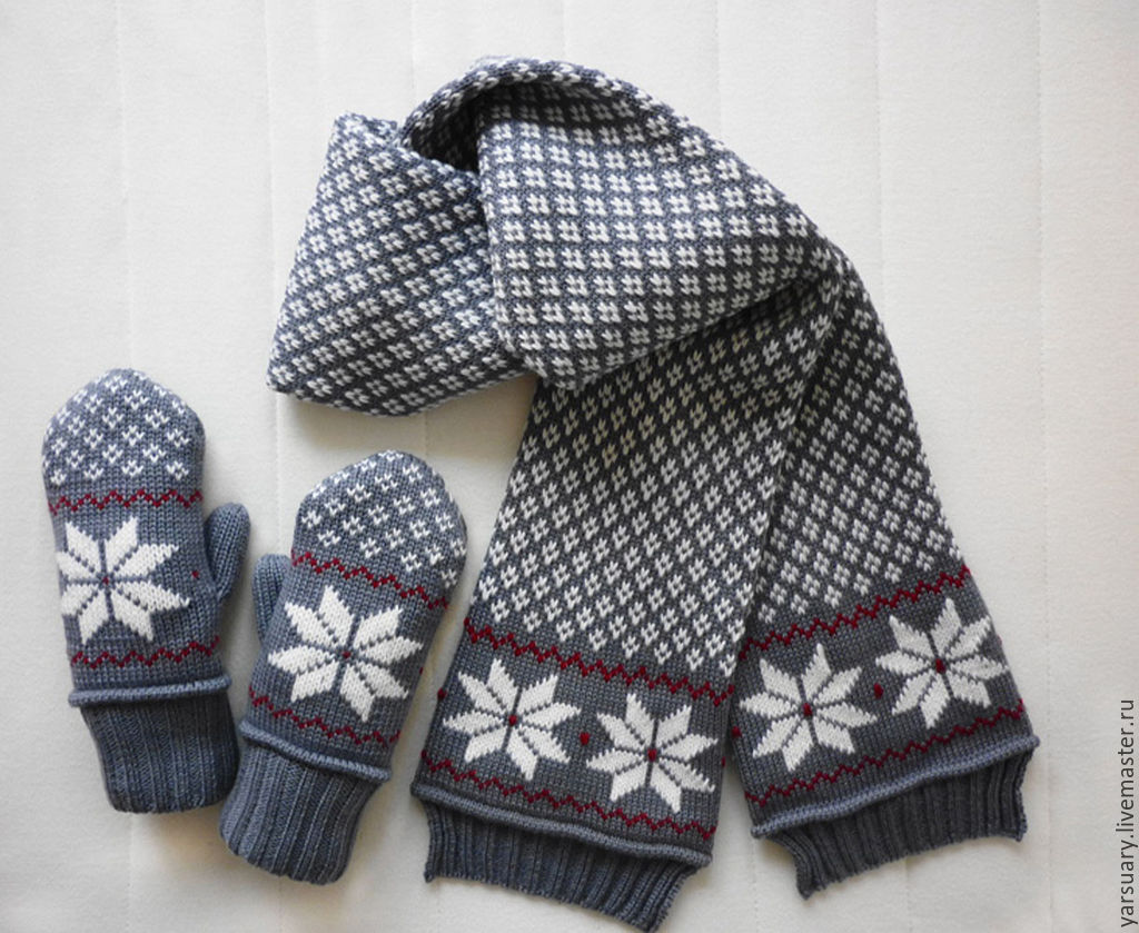 Шарф варежки спицами