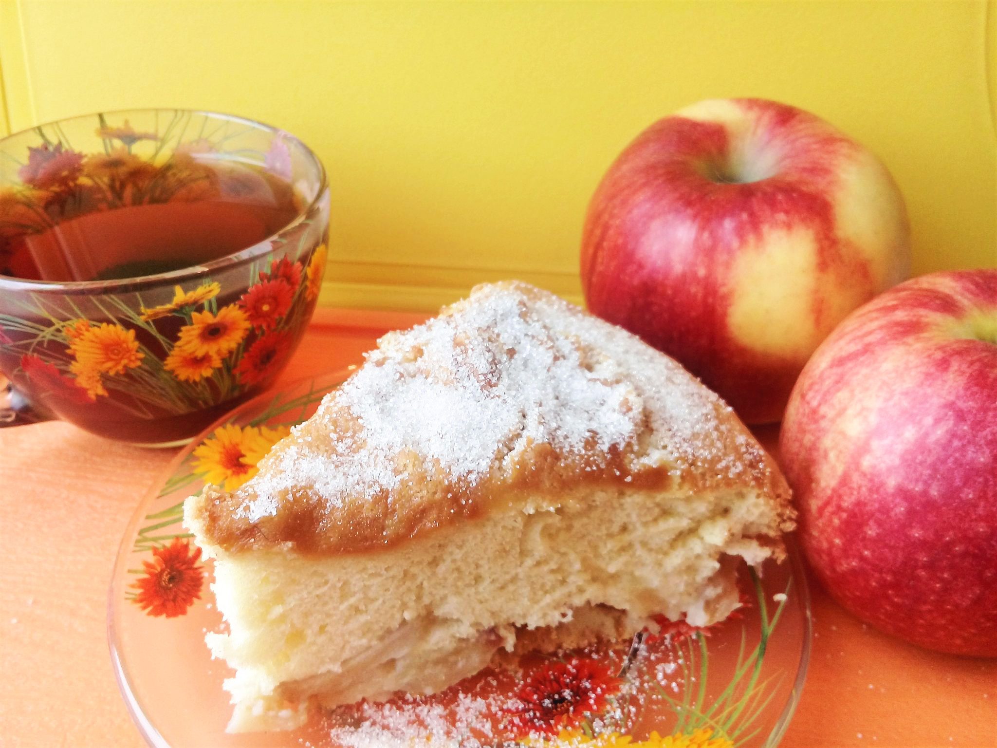 Постная яблочная шарлотка на чае или соке . Рецепт приготовления