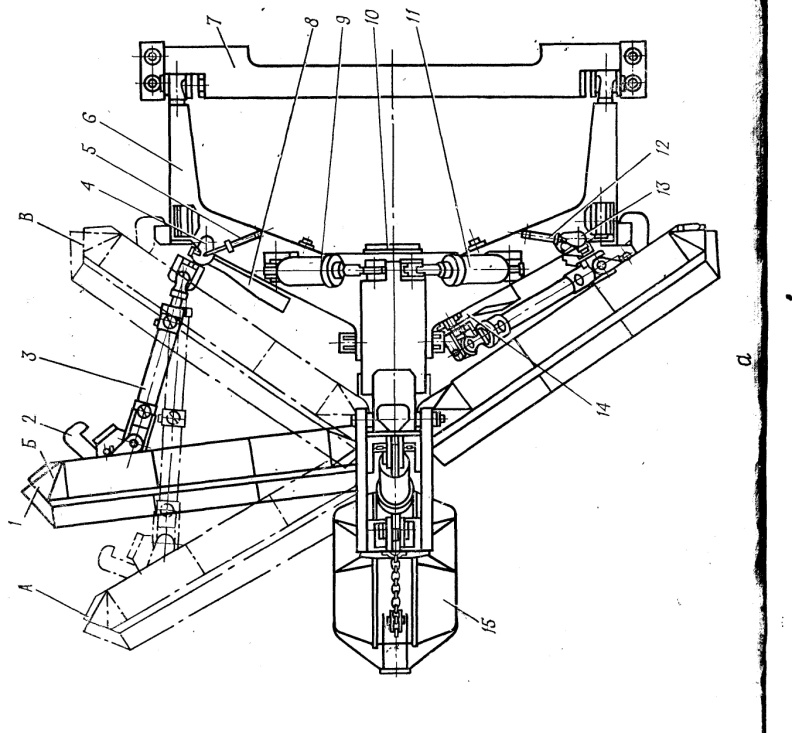 Через подъемные гидроцилиндры задняя стенка отвала бульдозера соединяется с рамой тягача. Толкающие брусья закреплены на рамах гусеничных тележек с помощью сферических или пальцевых шарниров. С отвалом они могут соединяться по симметричной или несимметричной схеме.