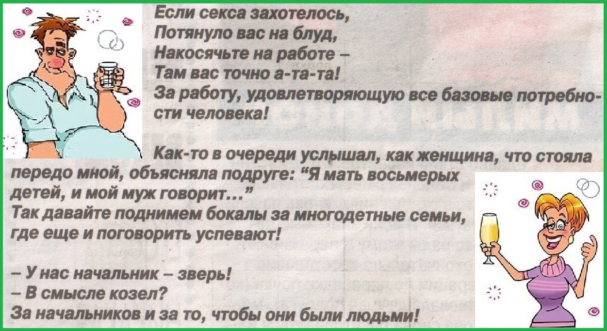 Шеф захотел ceкcа, звонит секретарше: — У меня встал вопрос! — Но у меня месячный отчет! Он бросил трубку. Секретарша пожалела шефа, заходит к нему и говорит: — Может задним числом или в устной форме? — Спасибо, я уже от руки набросал!