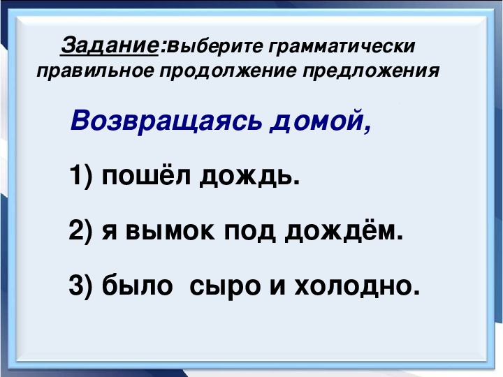 Шел дождь продолжить предложение