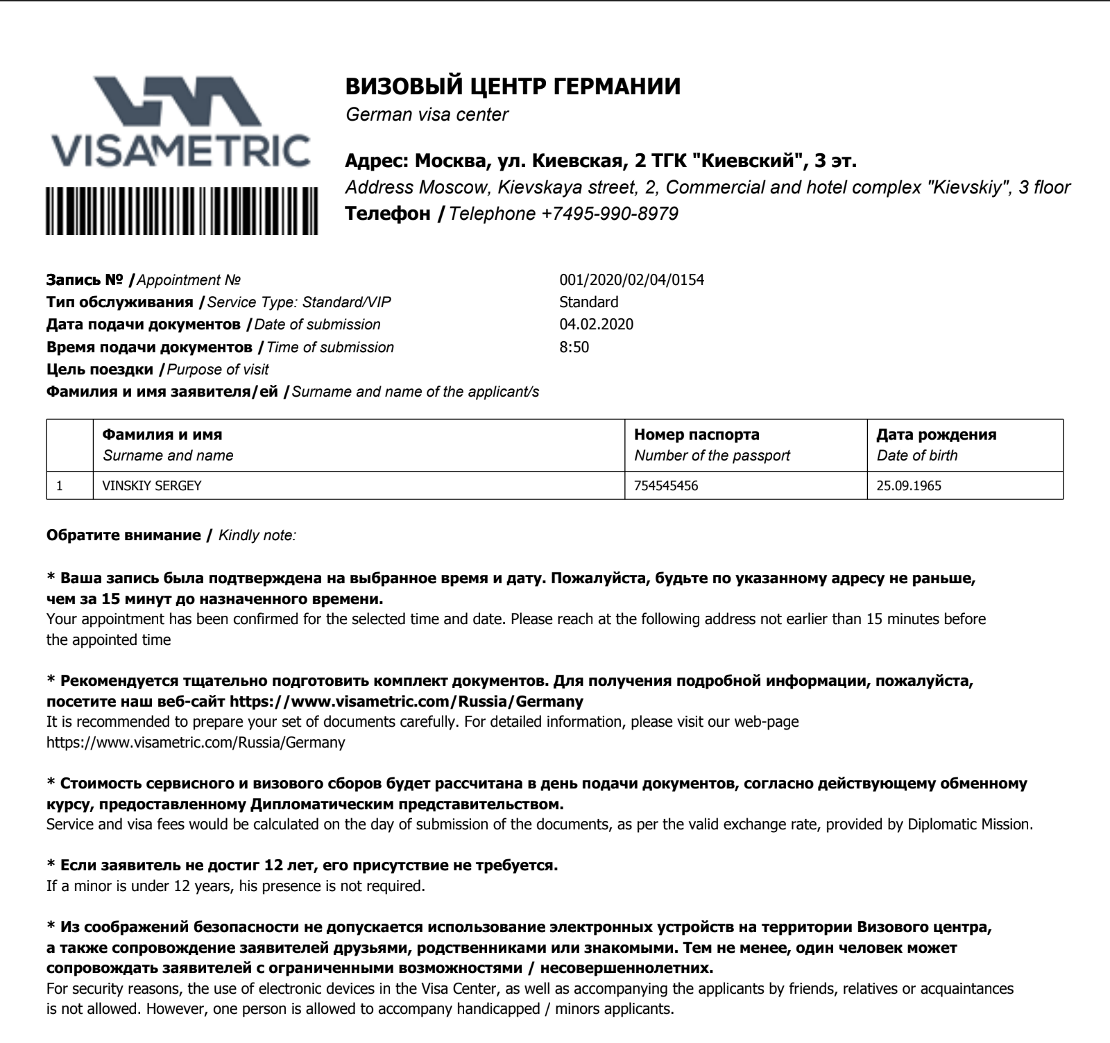 Шенгенская виза запись