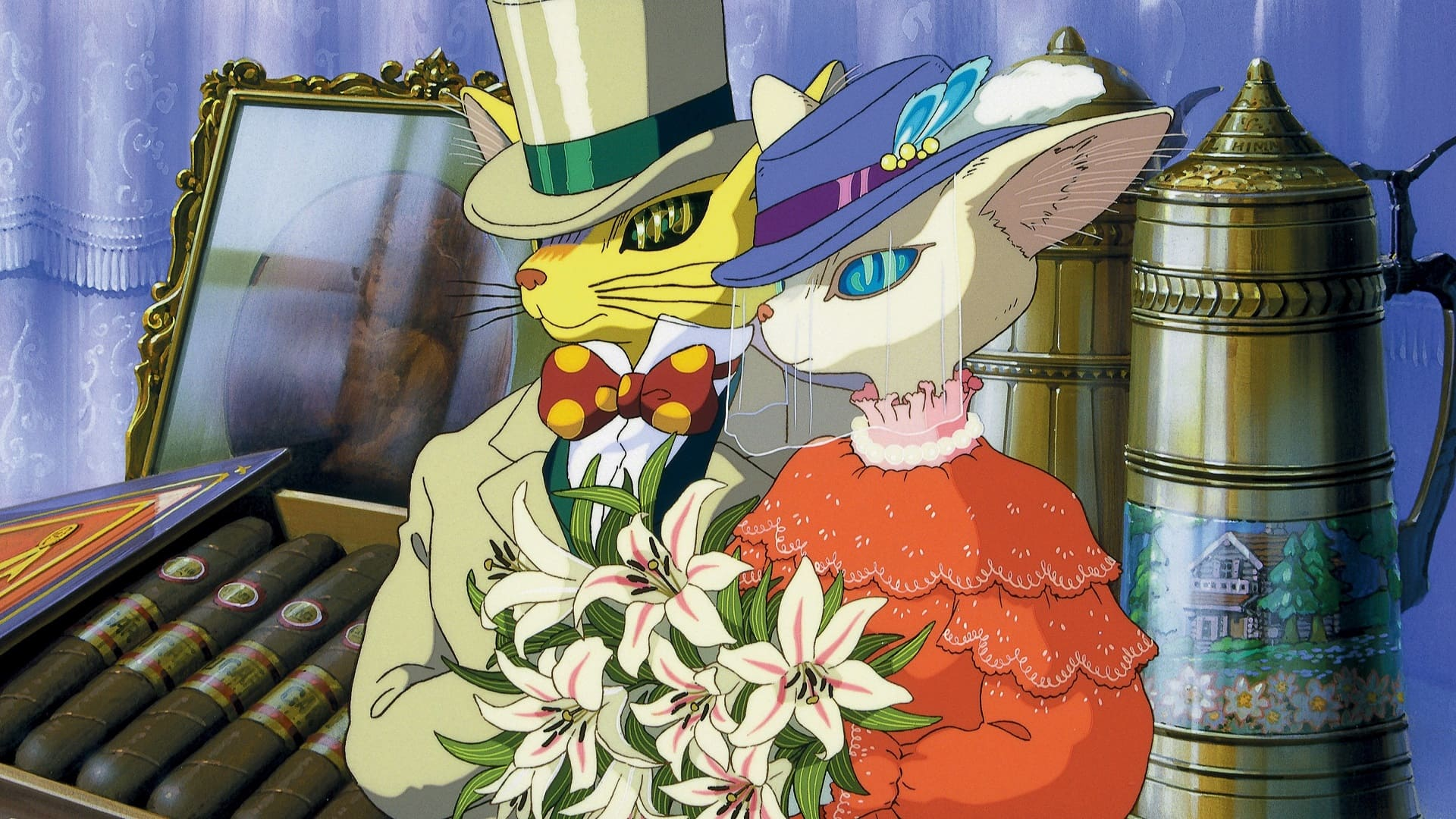 Отдельная глава в «Шепоте сердца» — вымышленный мир Сидзуку, так легко соседствующий с действительностью. В нем осколки реальности, вроде фигурки кота Барона из античного магазинчика, отлично сочетаются с палитрой чувств юной героини: и долгожданным полетом фантазии, и легкостью влюбленности.