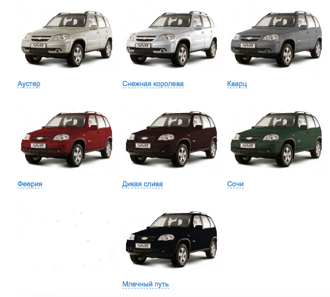 Цвета Шевроле Нива - Chevrolet Niva