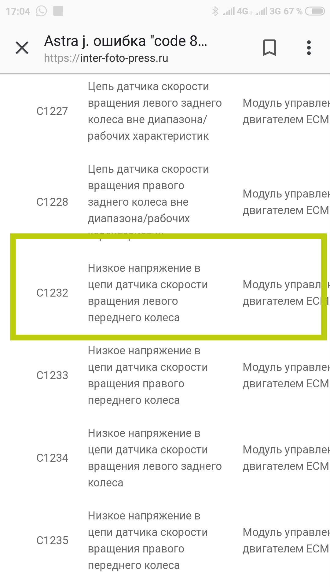 Шевроле авео ошибка абс