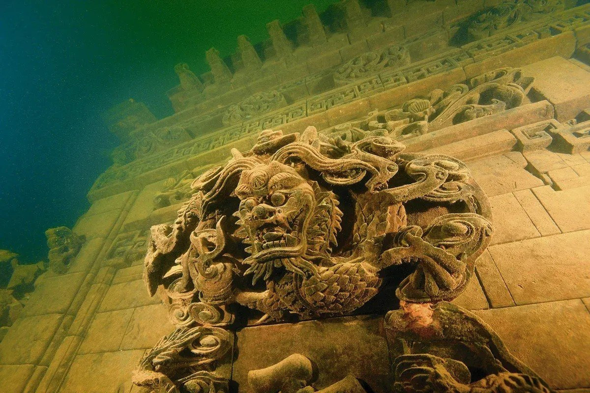 Когда город стал безлюдным, была возведена дамба. По мере пребывания воды город постепенно опускался под воду. В конечном итоге данная местность стала дном огромного водоема — озера Цяньдаоху, название которого переводится как “Озеро тысячи островов”.