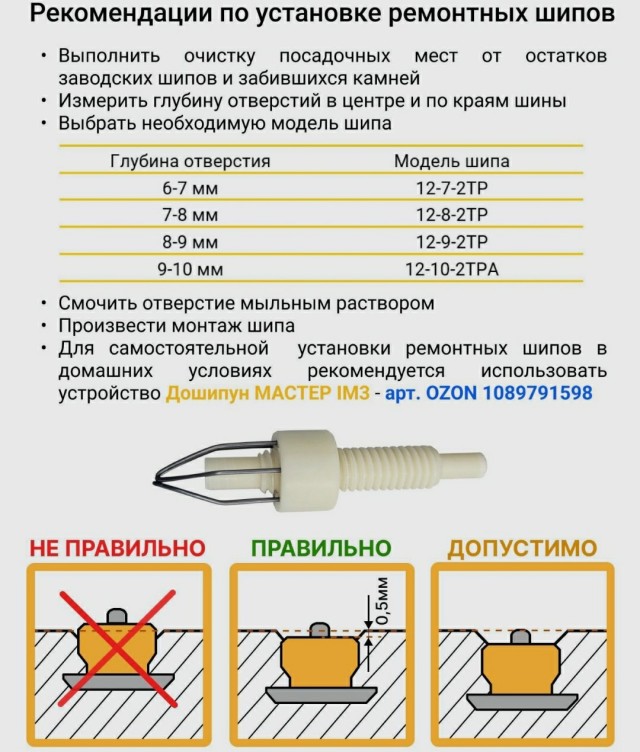 Шипы для дошиповки размеры