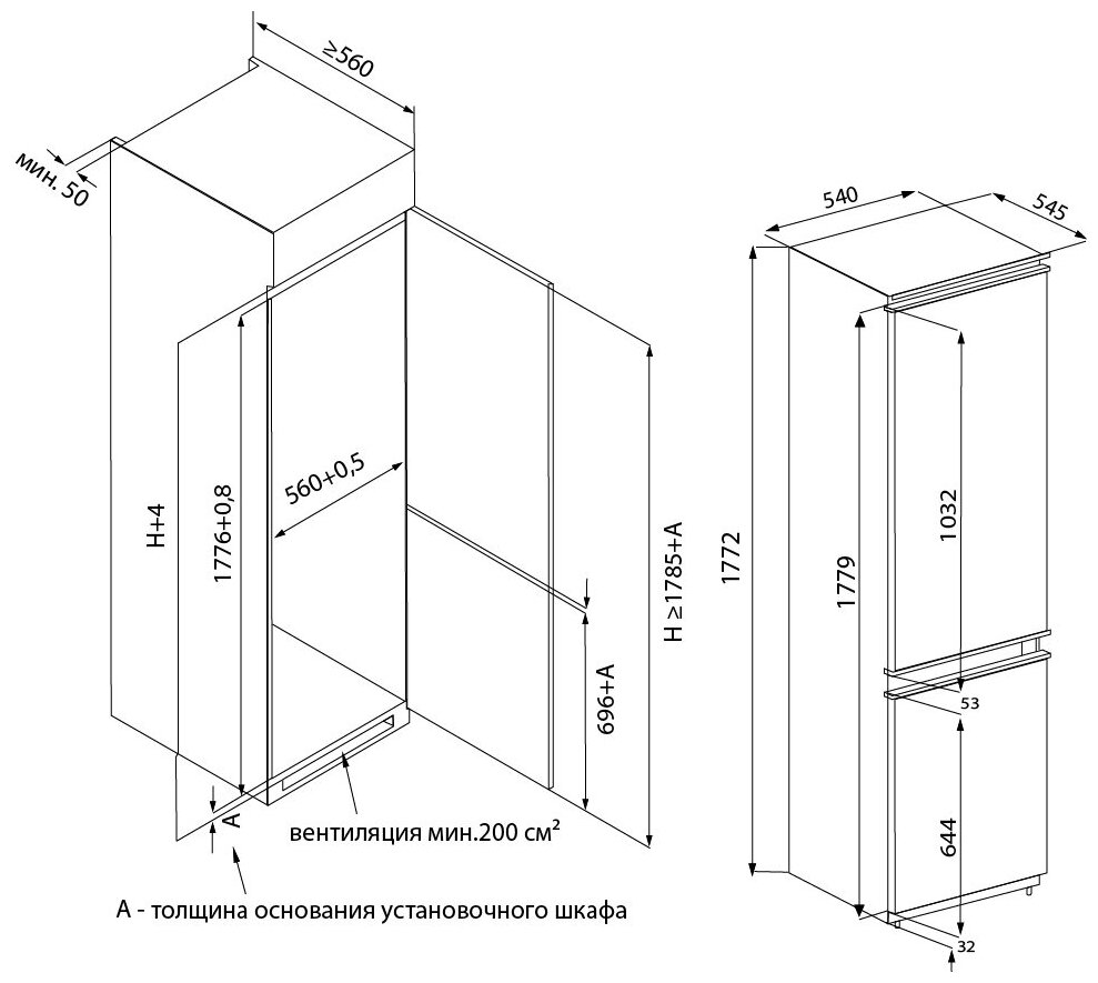 Ширина холодильного шкафа